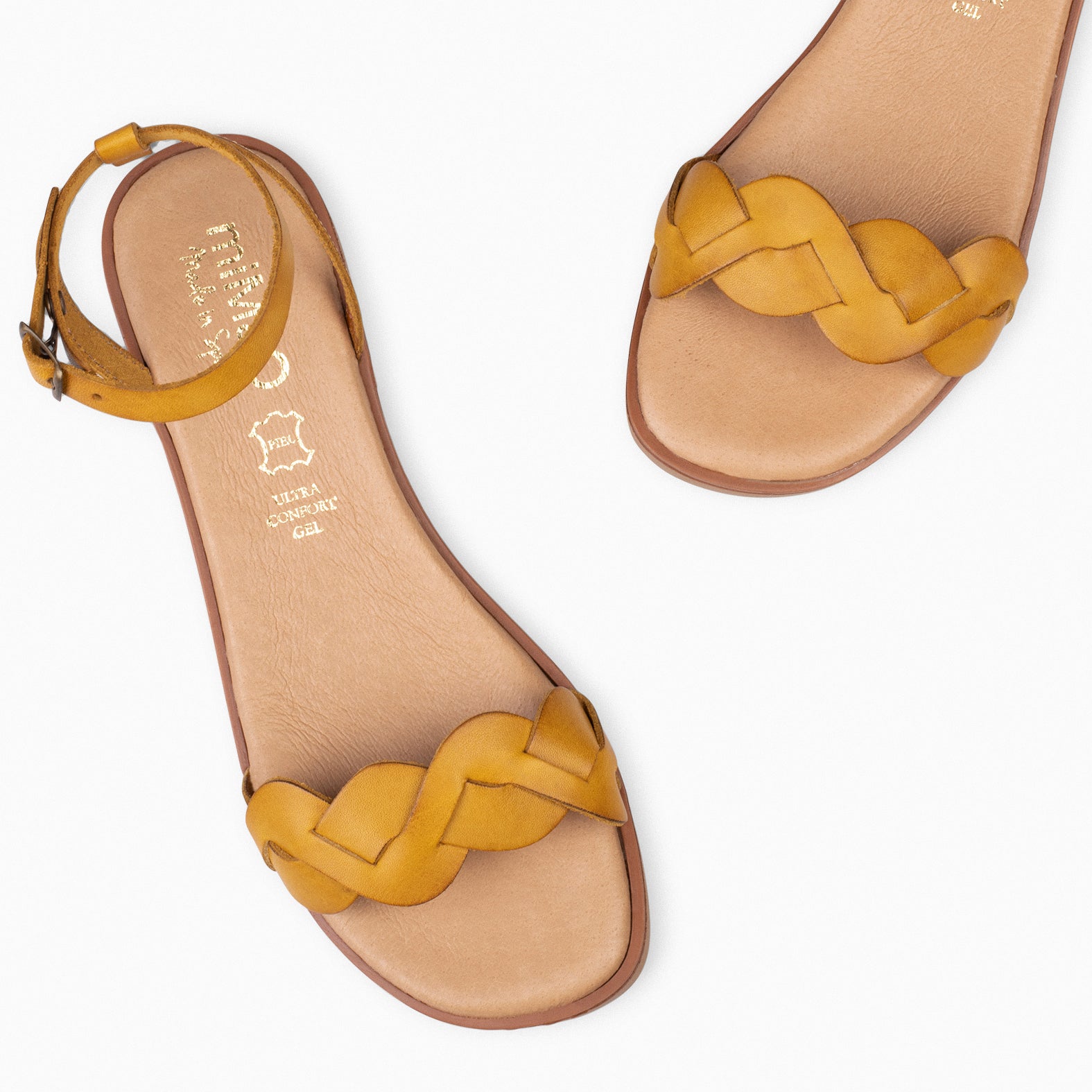 AIRE - GOLDEN FLAT BIO SANDALS WITH BRAIDED STRAP