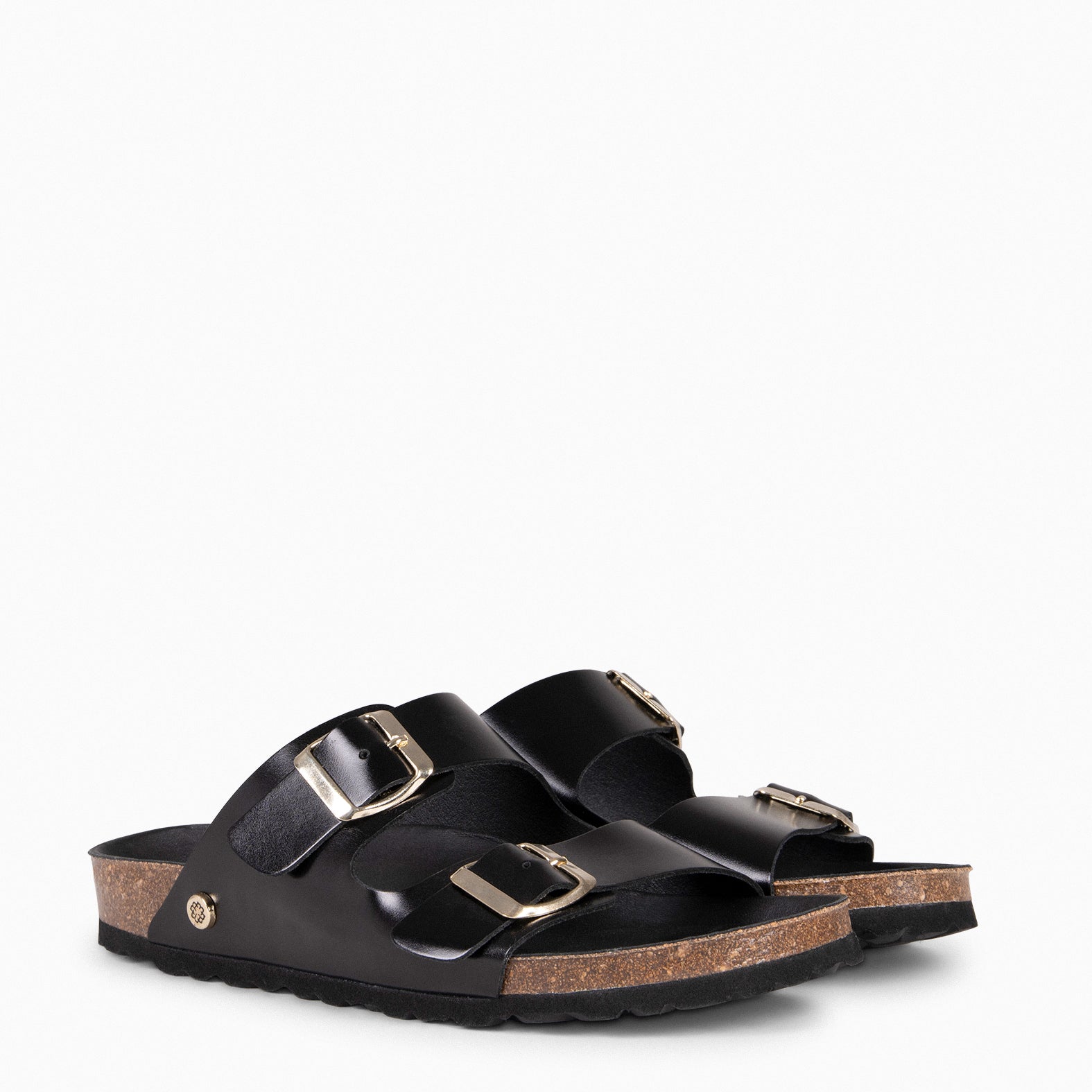 AIRE - BLACK FLAT BIO SANDALS WITH BRAIDED STRAPS