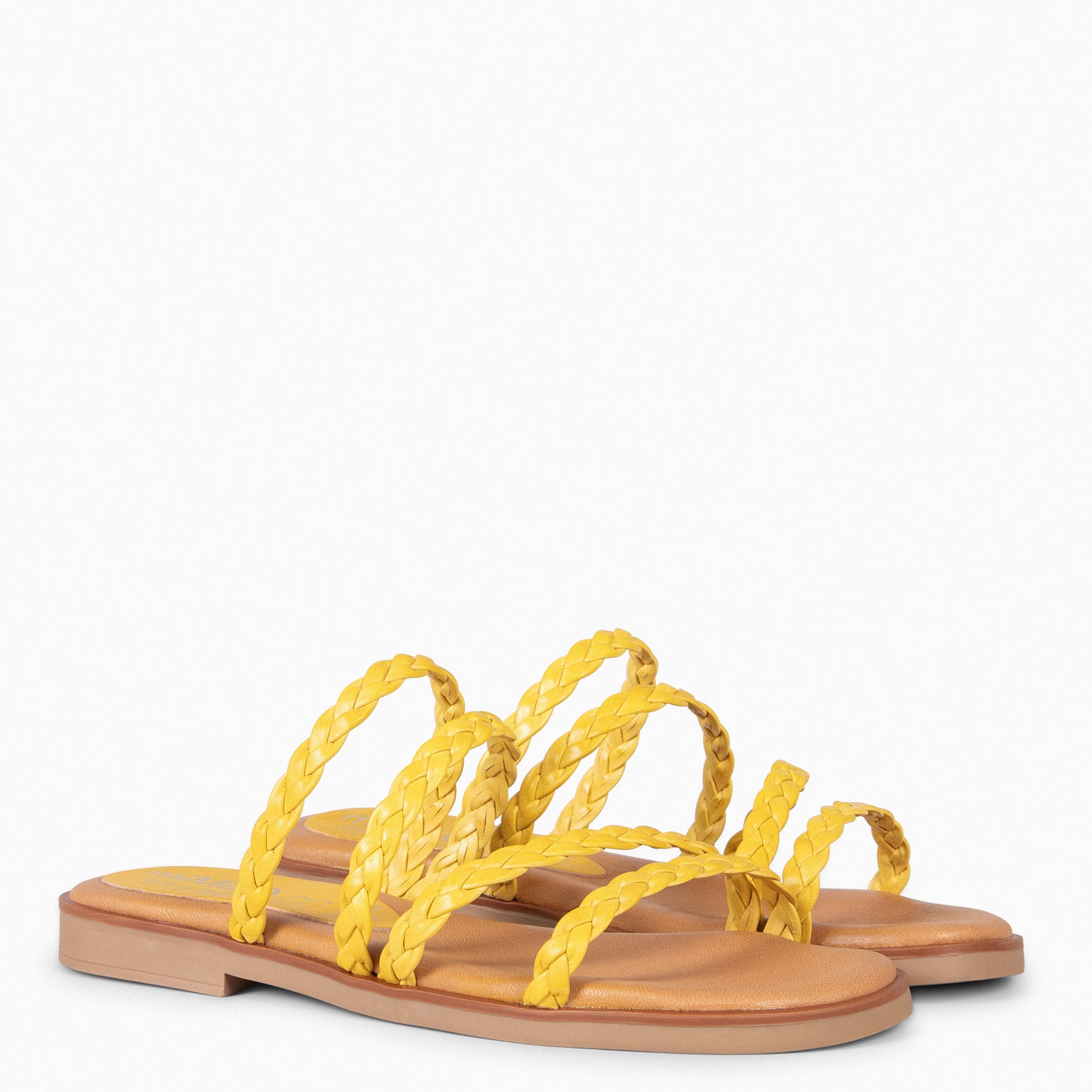 AIRE - GOLDEN FLAT BIO SANDALS WITH BRAIDED STRAP