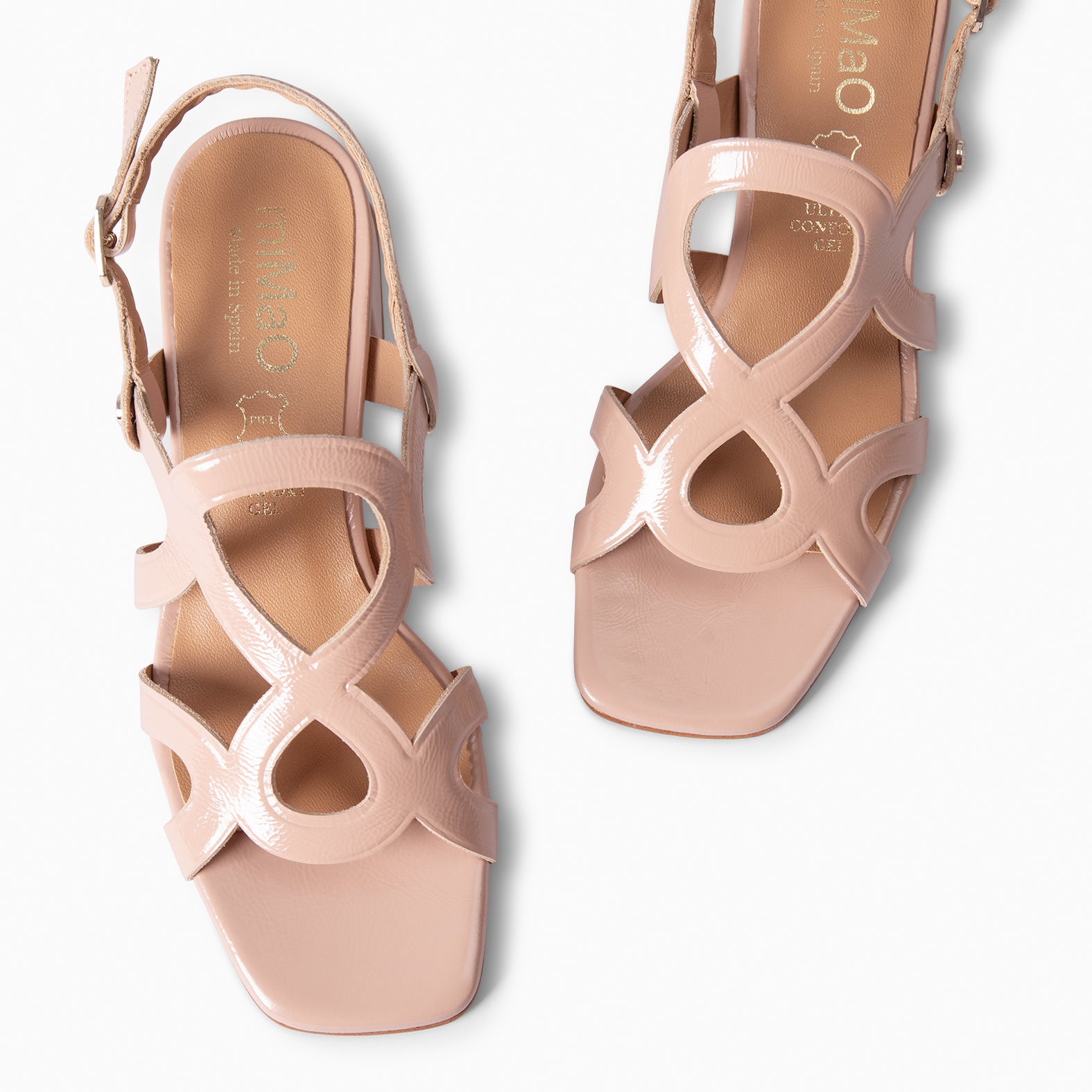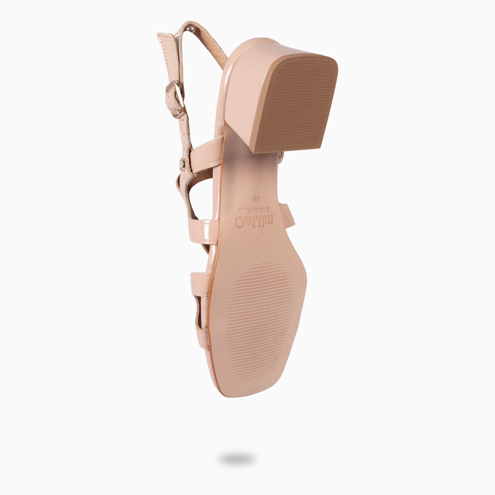SARA - NUDE WIDE HEELED SANDALS SHOES