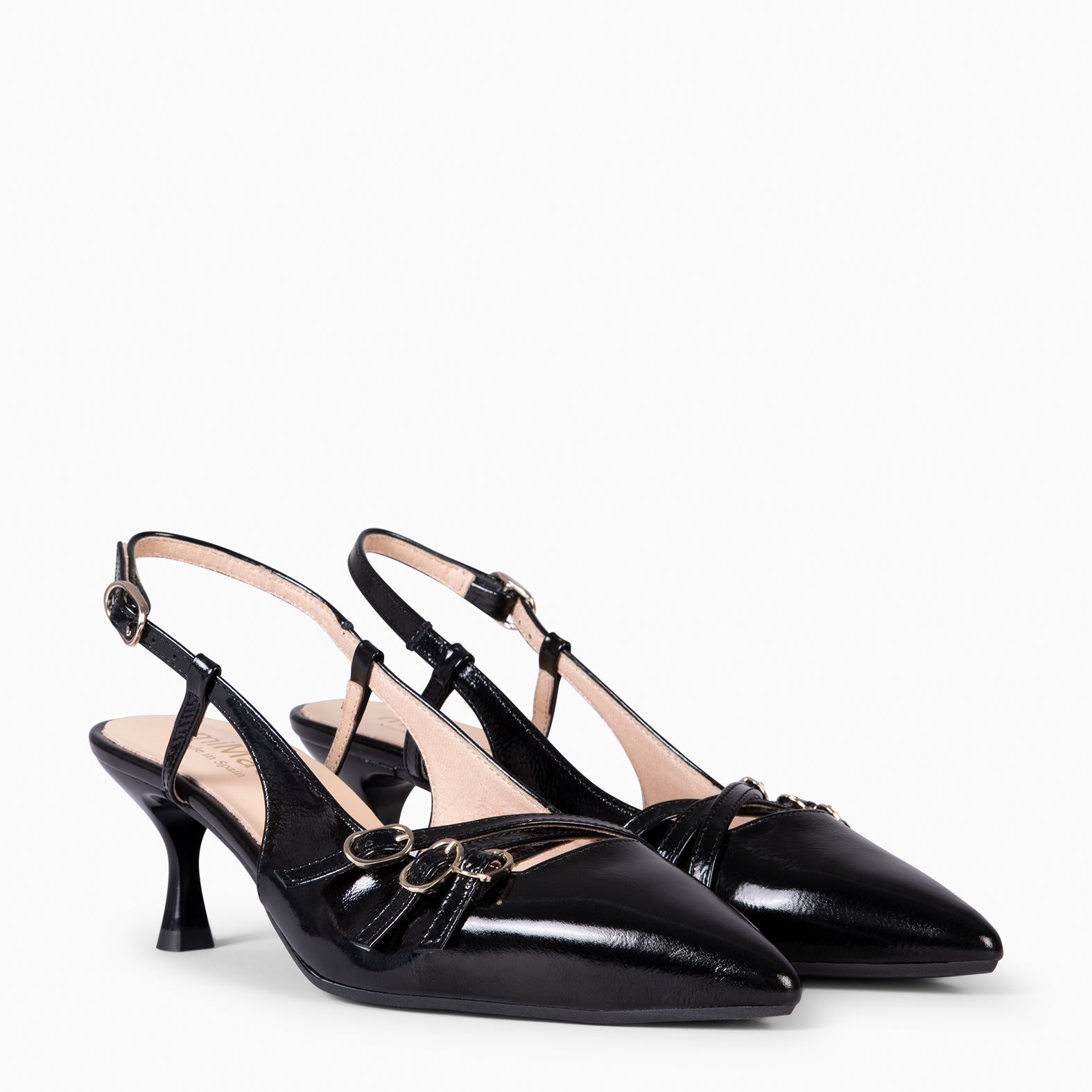 SLING-BACK KITTEN - BLACK LOW HEEL SHOES