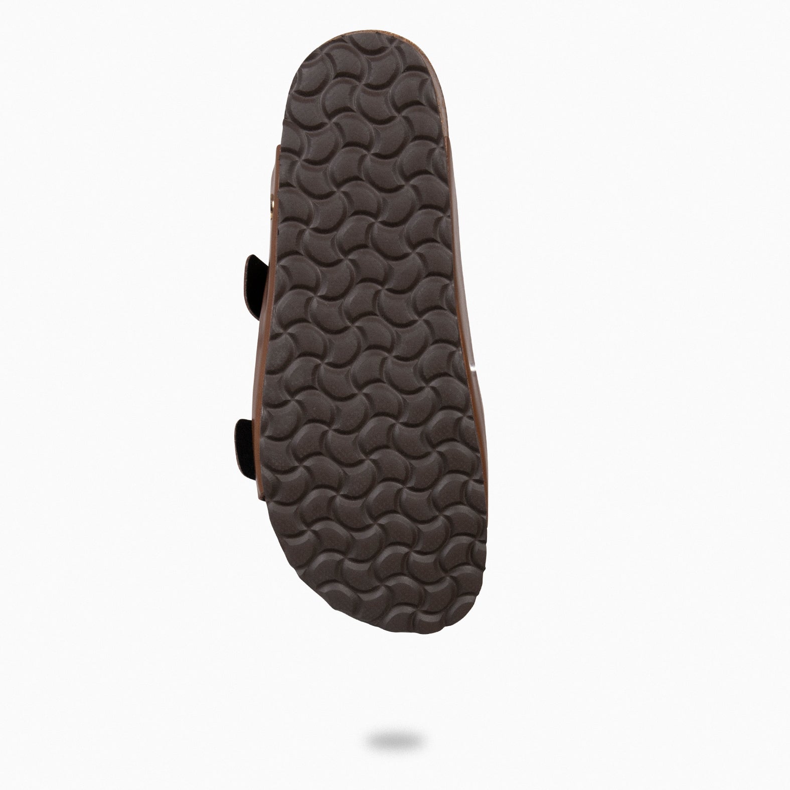 These flat sandals have an ultra comfort gel leather sole, ergonomically designed for highest comfort over a long period of wear.