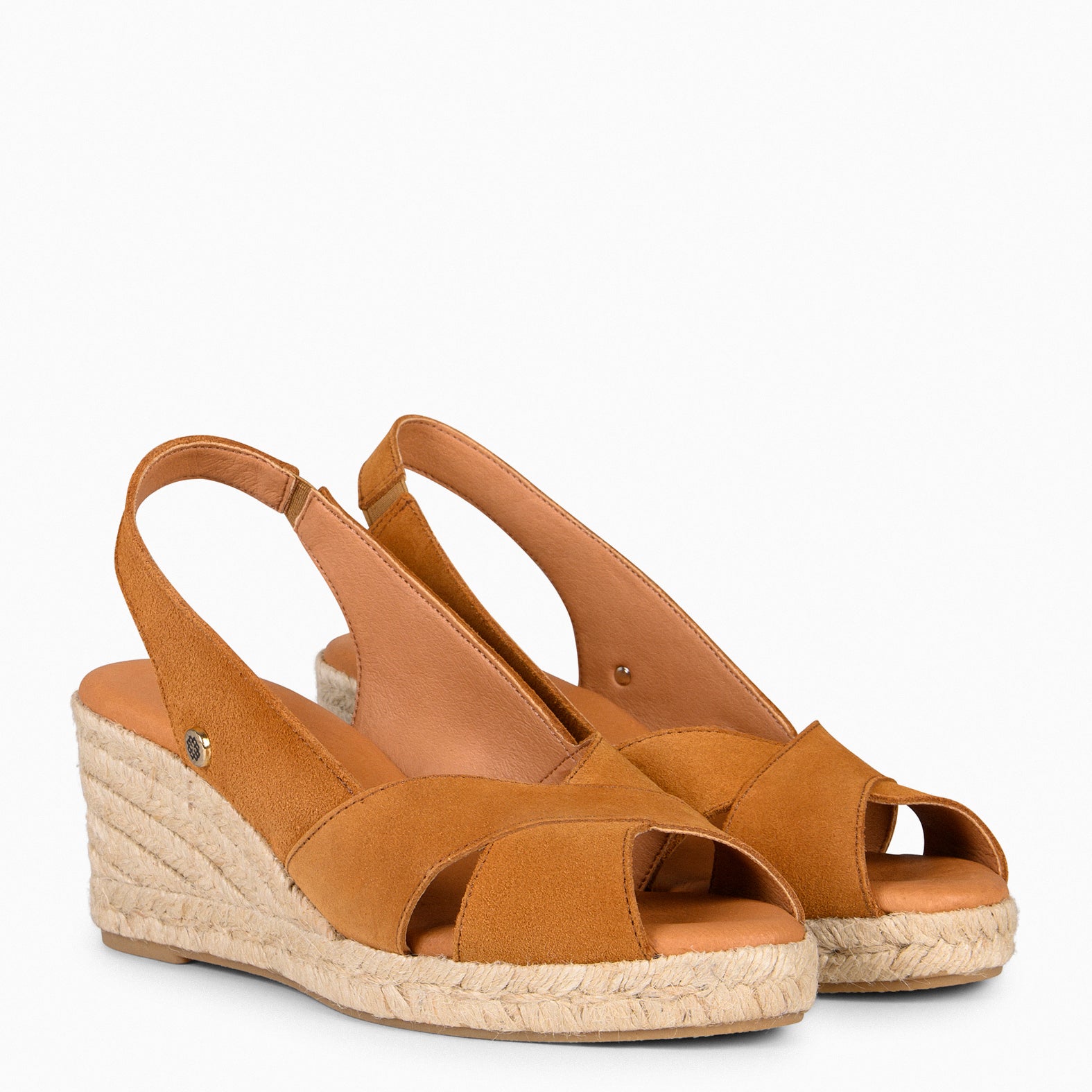 Estas cuñas de esparto están fabricadas en piel de serraje, la punta circular, una característica distintiva del diseño Peep Toe. Cuenta con una cuña de 7,5 cm y una plataforma de 2 cm, estas sandalias de esparto ofrecen una altura ideal que estiliza tu figura, permitiéndote disfrutar de la comodidad de una suela estable en cada paso.