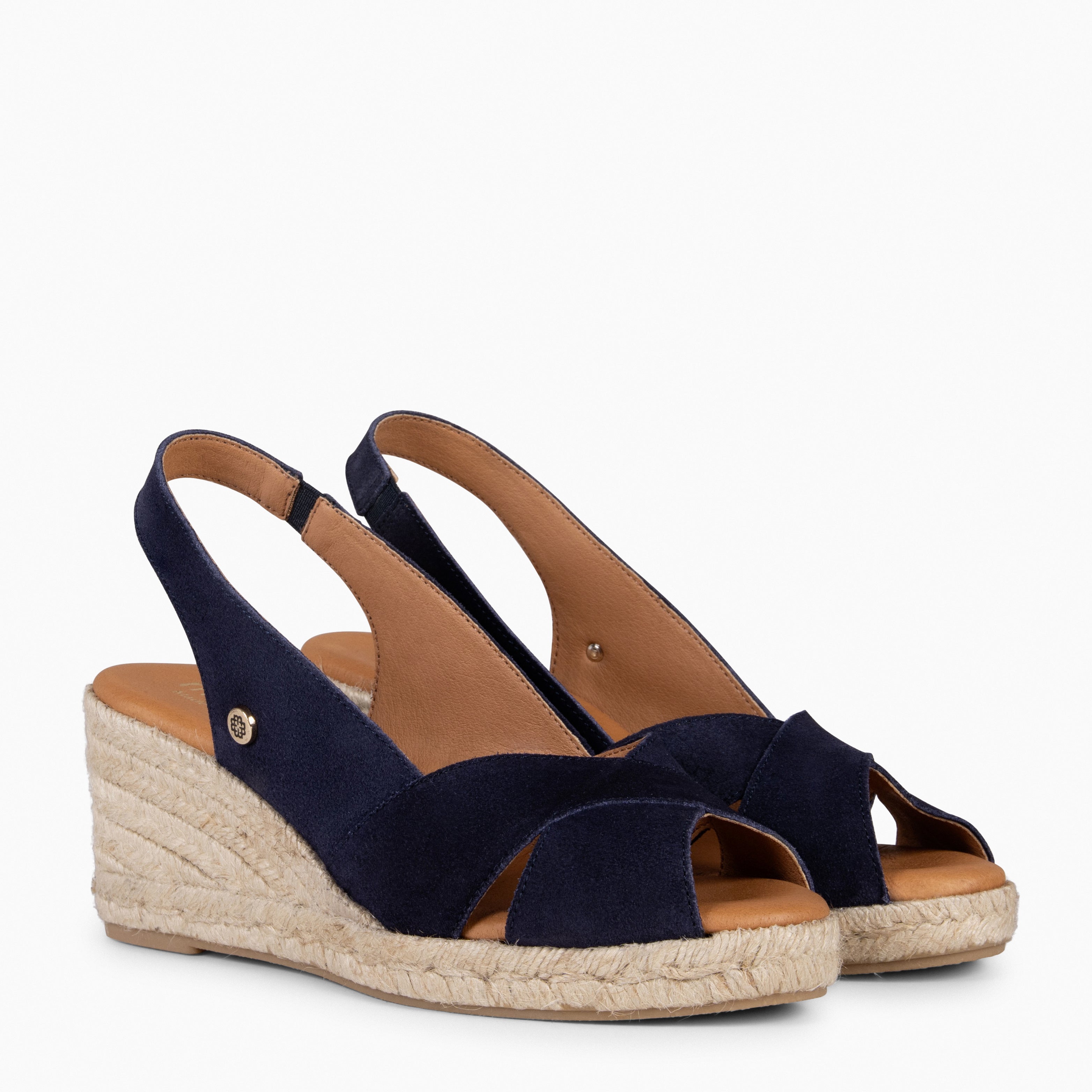 Estas cuñas de esparto están fabricadas en piel de serraje, la punta circular, una característica distintiva del diseño Peep Toe. Cuenta con una cuña de 7,5 cm y una plataforma de 2 cm, estas sandalias de esparto ofrecen una altura ideal que estiliza tu figura, permitiéndote disfrutar de la comodidad de una suela estable en cada paso.