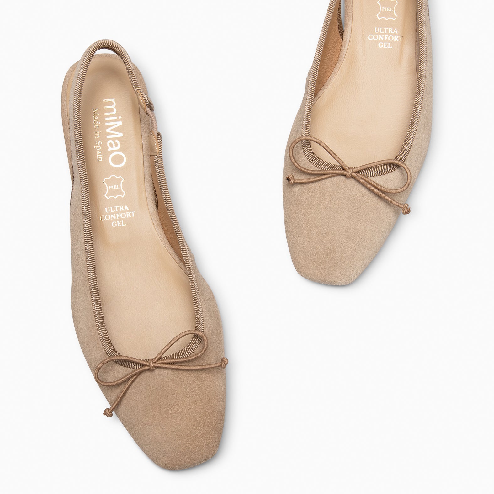 LUNA - BAILARINA DESTALONADA PLANA CON LAZO BEIGE
