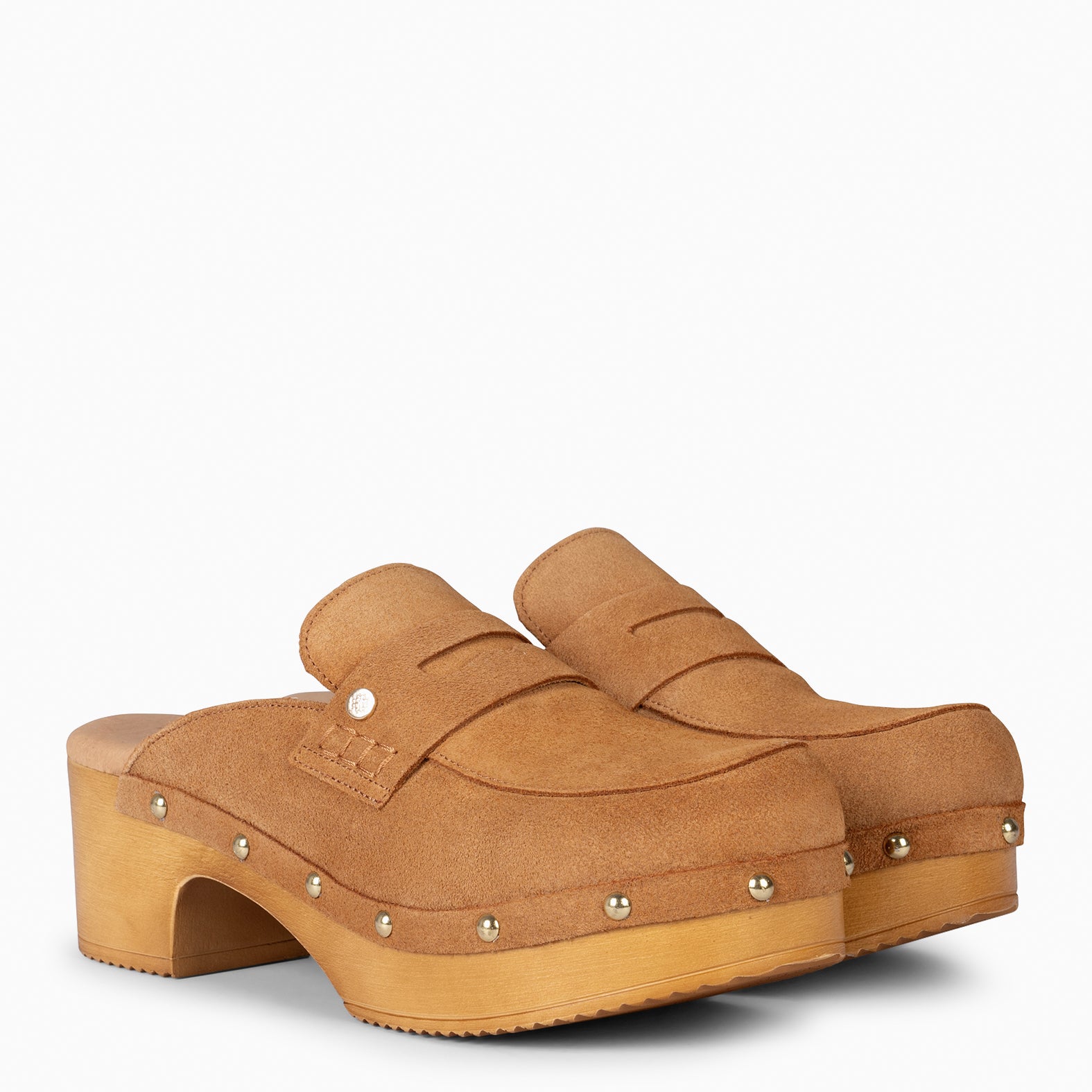 GASSIN - Zuecos con tacón Bajo y Plataforma BEIGE