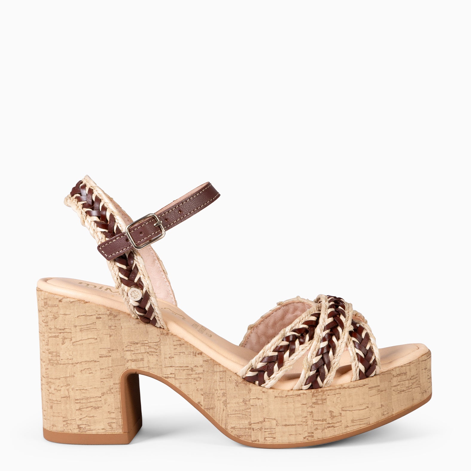 FLORA - SANDALIAS CASUALES DE TACÓN ALTO MARRÓN