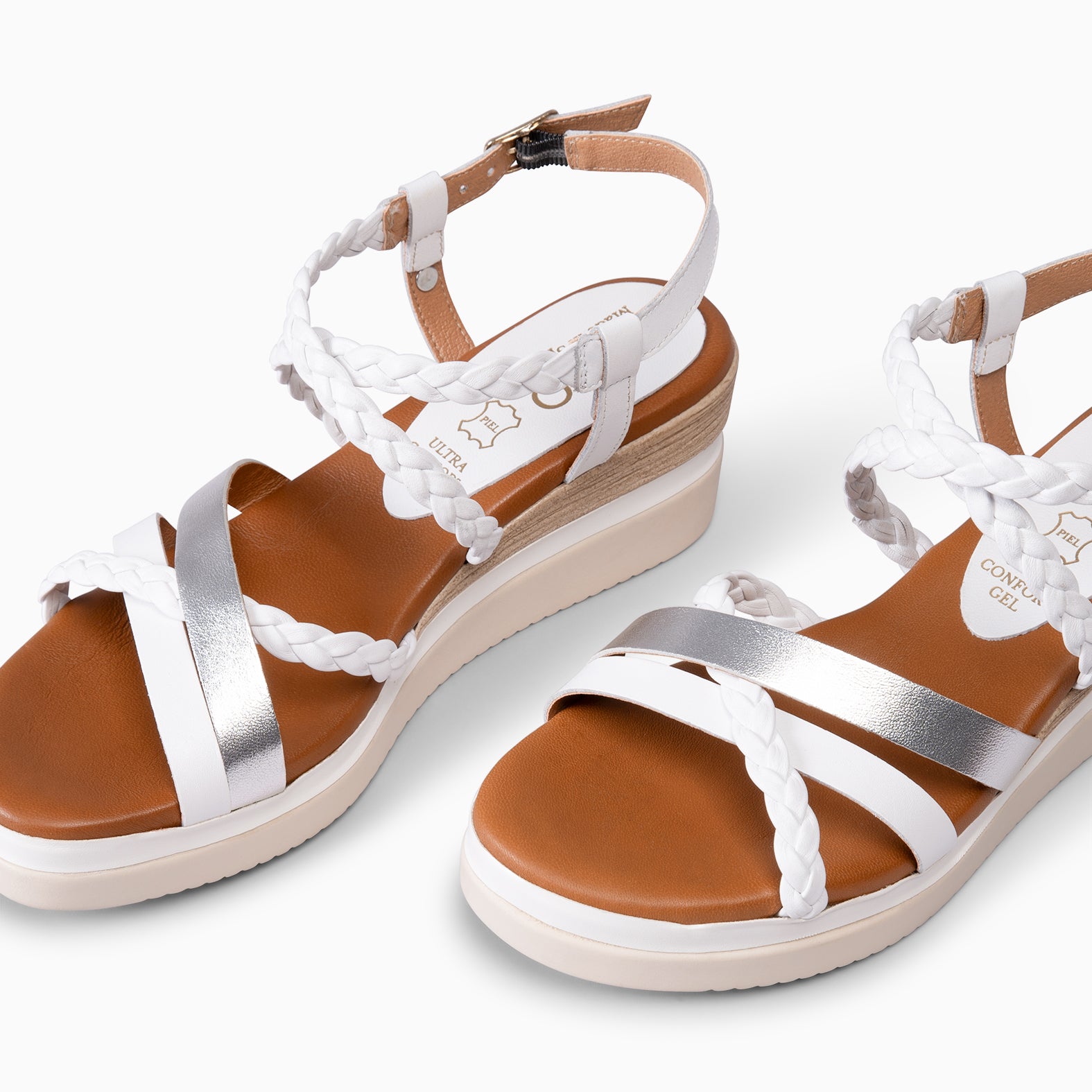 GLADYS - SANDALIA BICOLOR CON CUÑA BLANCO