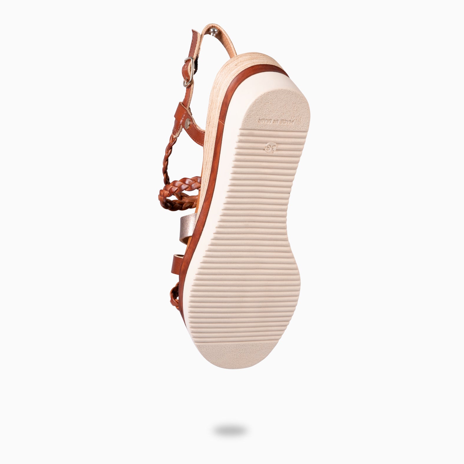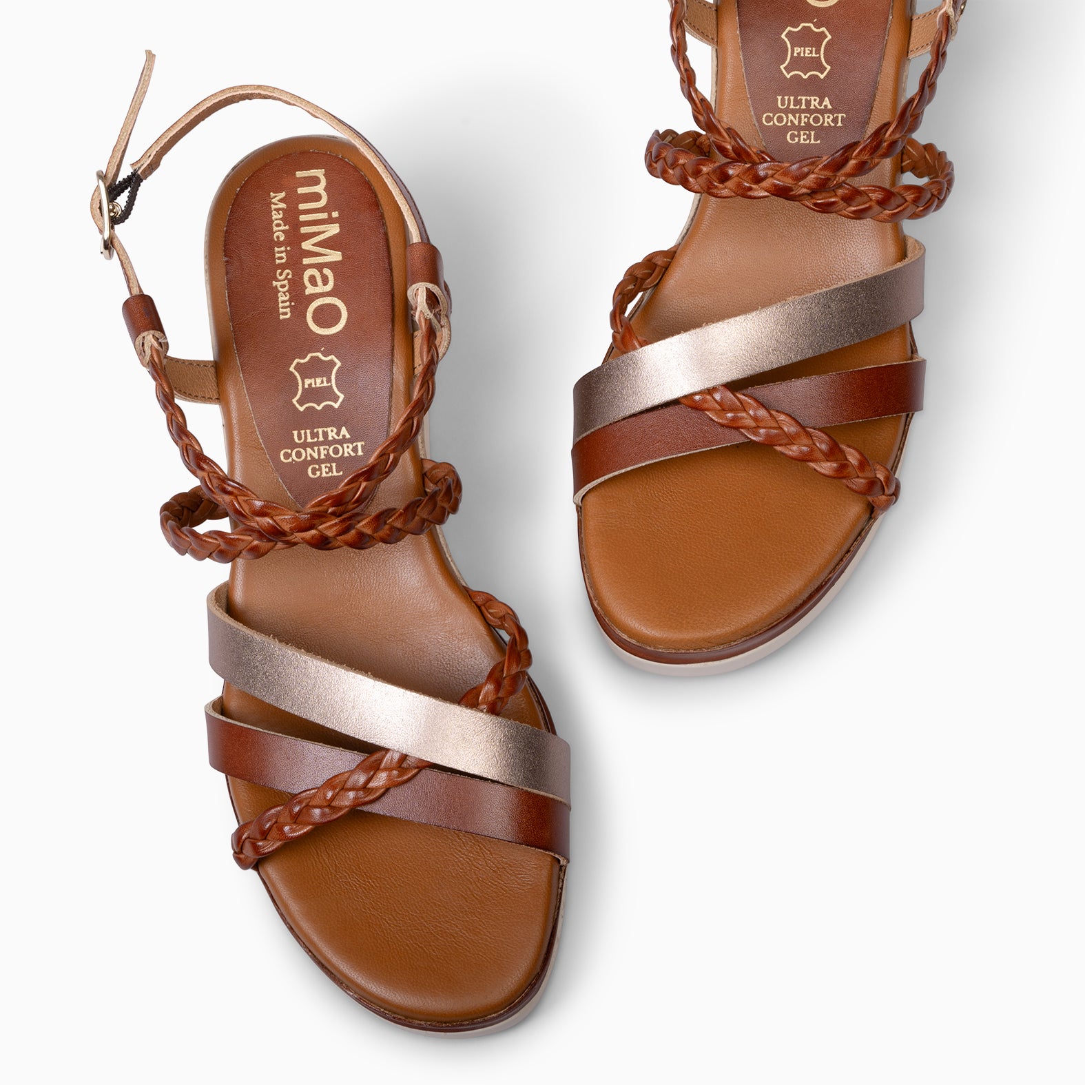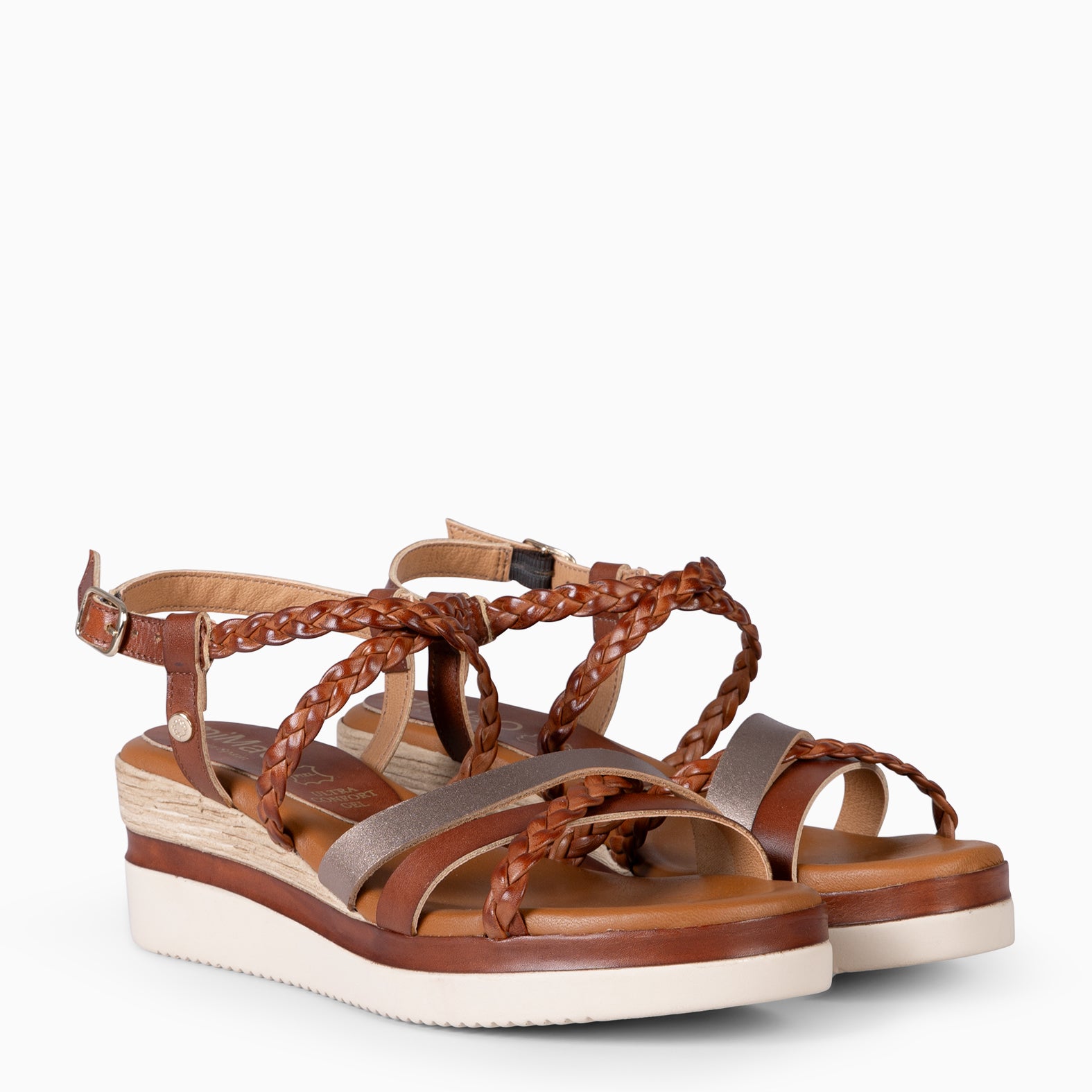 GLADYS - SANDALIA BICOLOR CON CUÑA CAMEL
