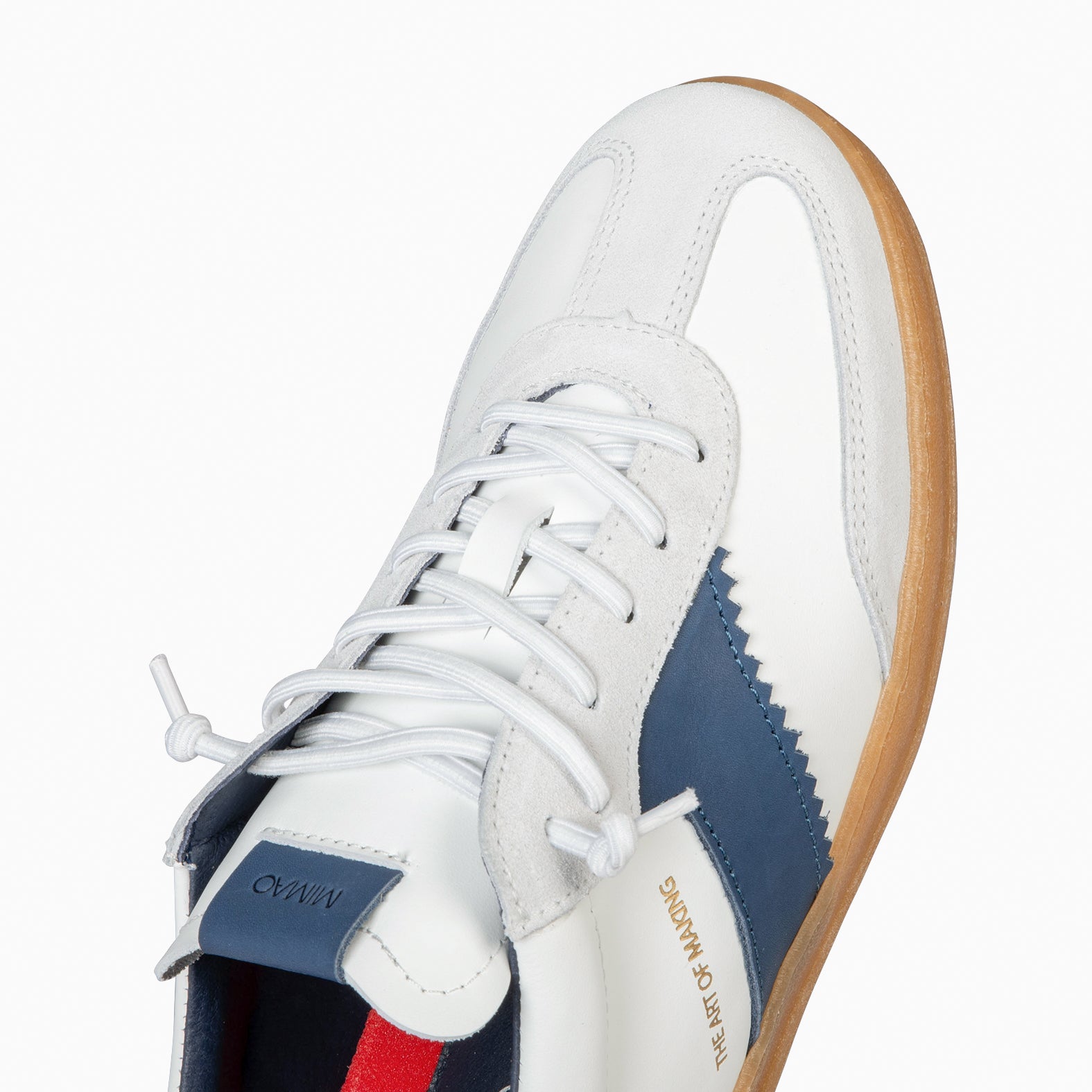 Nuestras nuevas zapatillas deportivas de hombre están fabricadas con piel de serraje y napa. Cuentan con cordones elásticos para mayor facilidad a la hora de ponerlos. Además, en el lateral tiene un grabado de nuestro logo de miMaO y la frase ‘The art of making’.