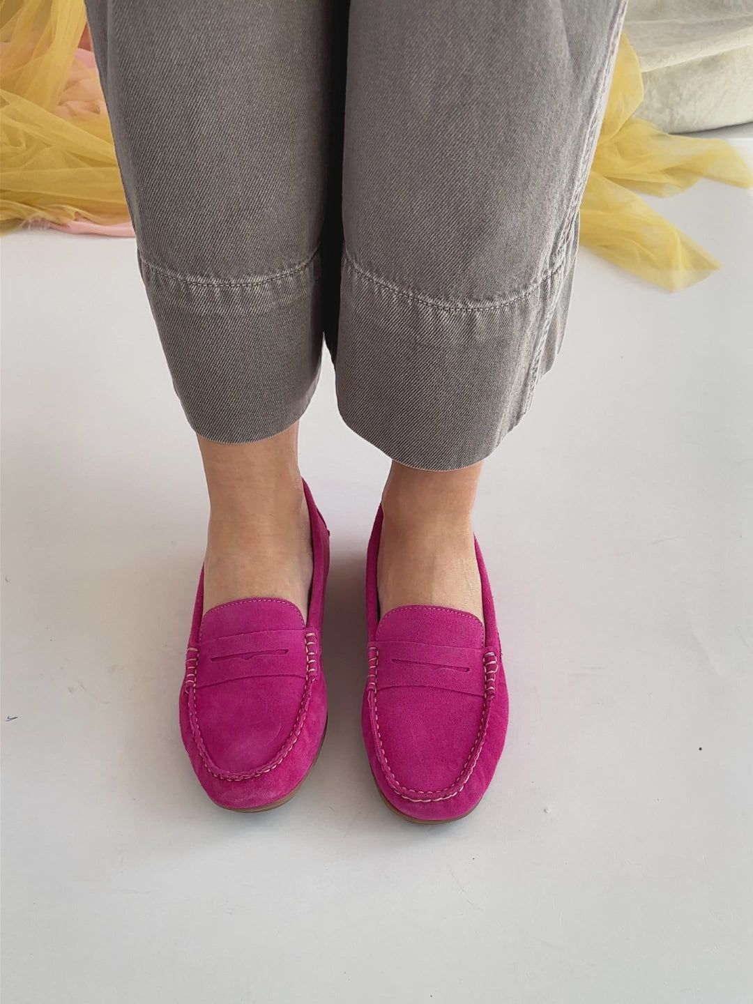 Mocasines planos de mujer de piel de serraje. Su estilo clásico es ideal para combinar con todos tus looks esta temporada.