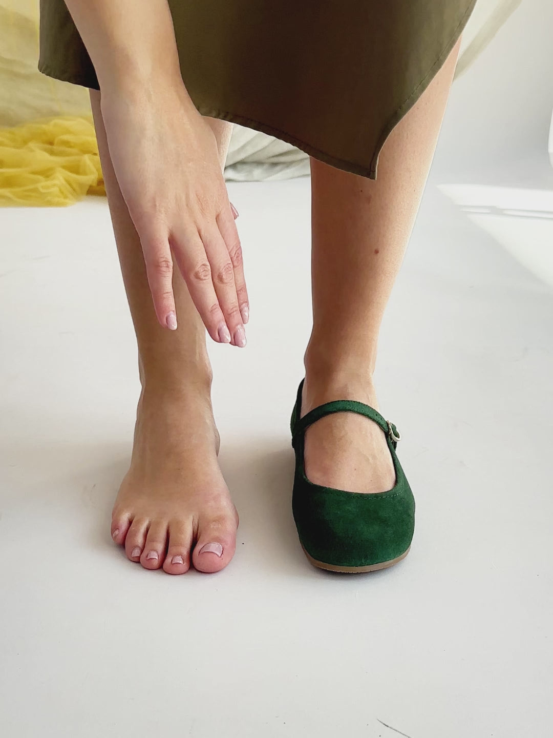 La Mercedita plana Jazmín Baresoft está inspirada en la tecnología Barefoot. Confeccionada en piel de serraje, incorpora una hebilla elástica que facilita su calce y proporciona una sujeción al caminar, garantizando comodidad y seguridad en cada paso. Su punta redondeada permite que los dedos se expandan de forma natural, proporcionando una sensación de mayor comodidad al caminar.