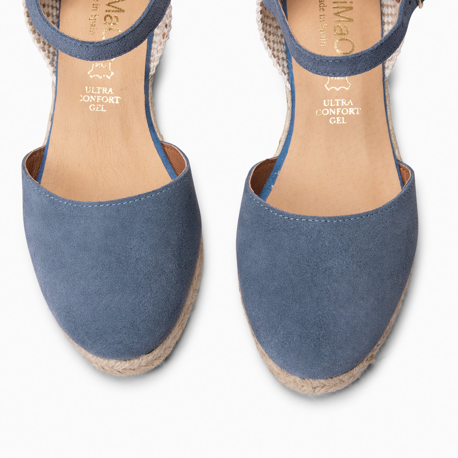 Ce nouveau modèle d’espadrilles à petit talon compensé est l'accessoire parfait à porter au quotidien en ce printemps été. Ces espadrilles pour femme sont fabriquées en daim de la plus haute qualité, leur design présente une coupe ronde, une bride à boucle réglable avec 5 positions d’ajustement pour s'adapter à votre cheville. Leur talon de 5 cm associé à une plateforme de 2 cm offre l'élévation parfaite sans compromettre la stabilité.