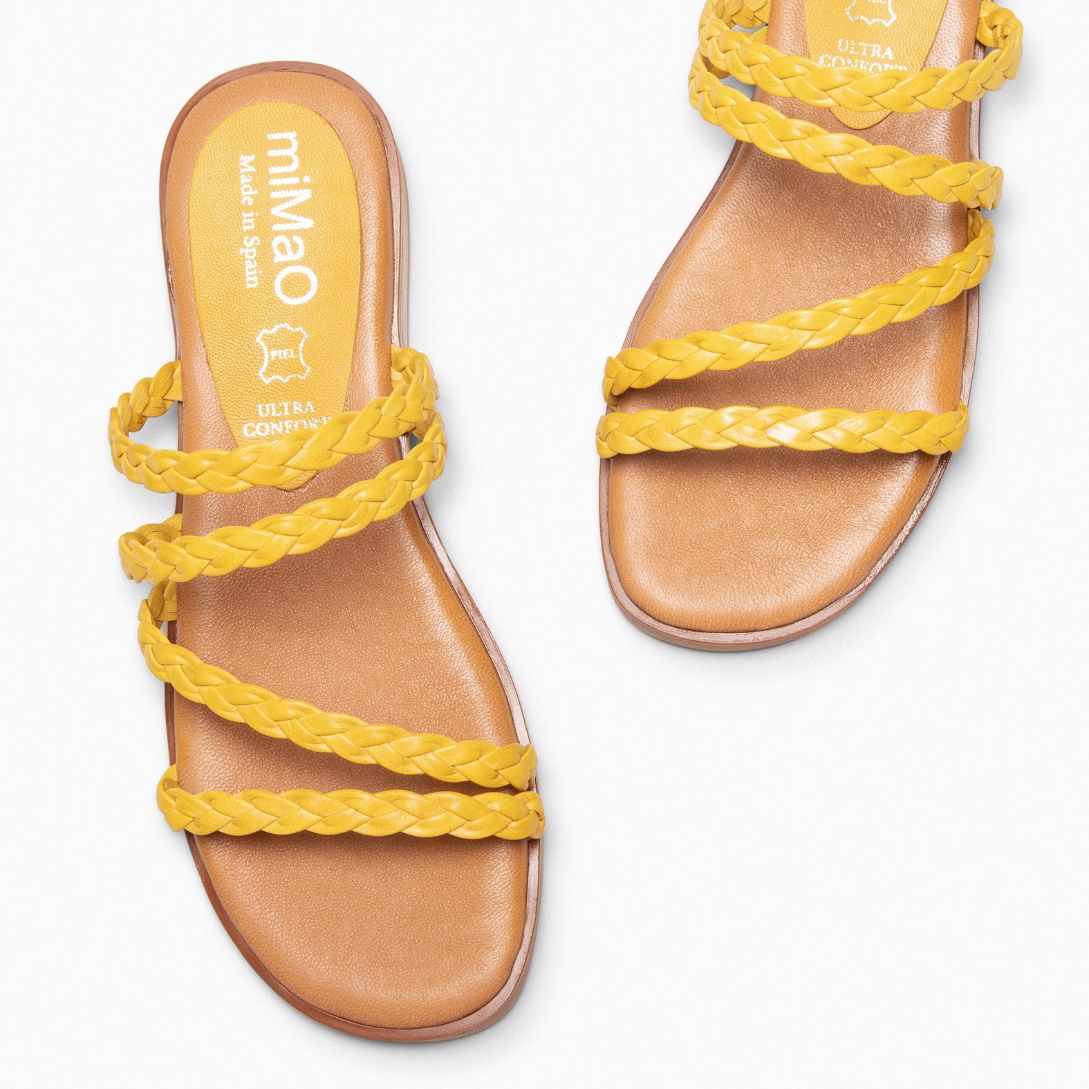 HIDRA - Sandales plates en cuir tressé JAUNE