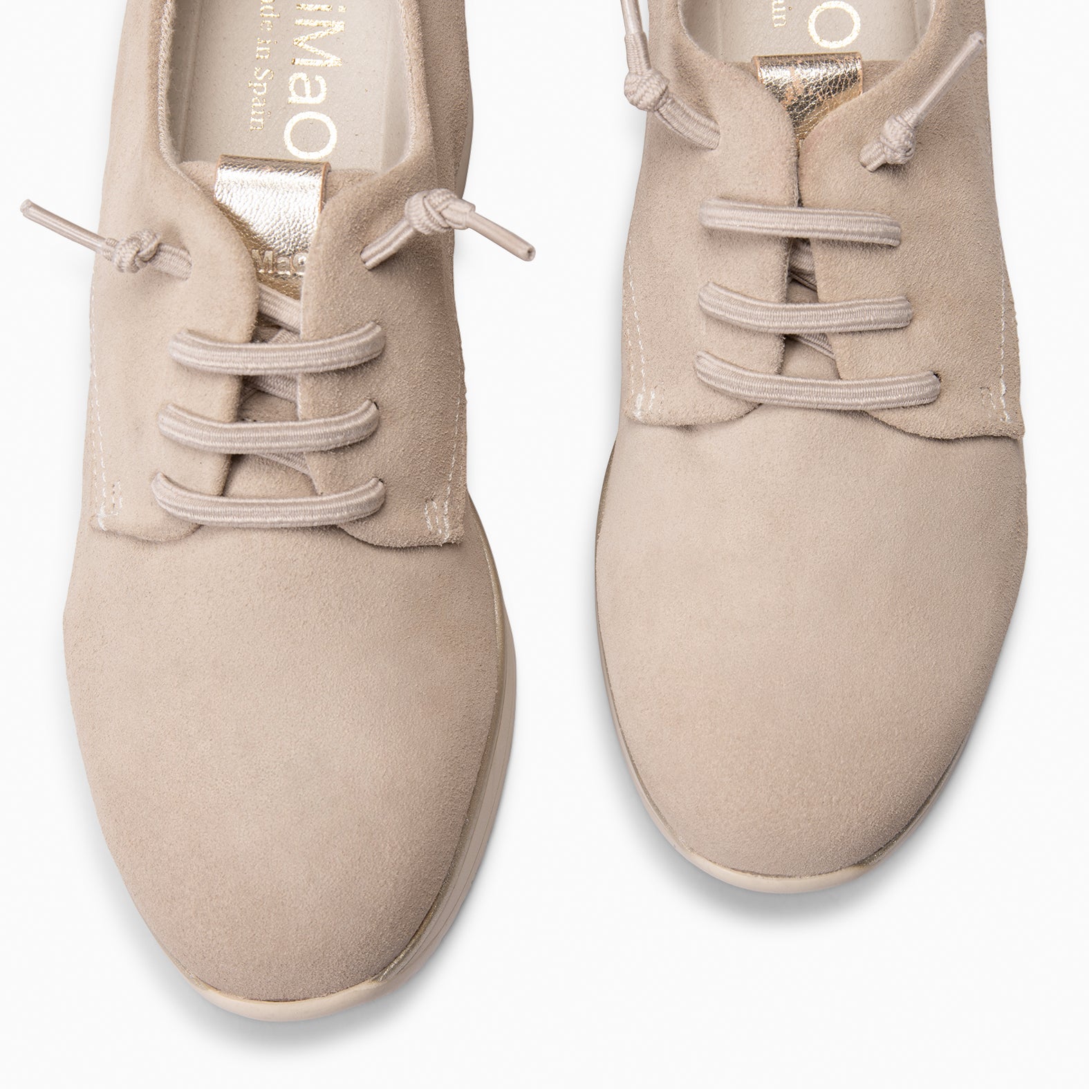 CASSEL - Baskets blucher à talon compensé en daim BEIGE