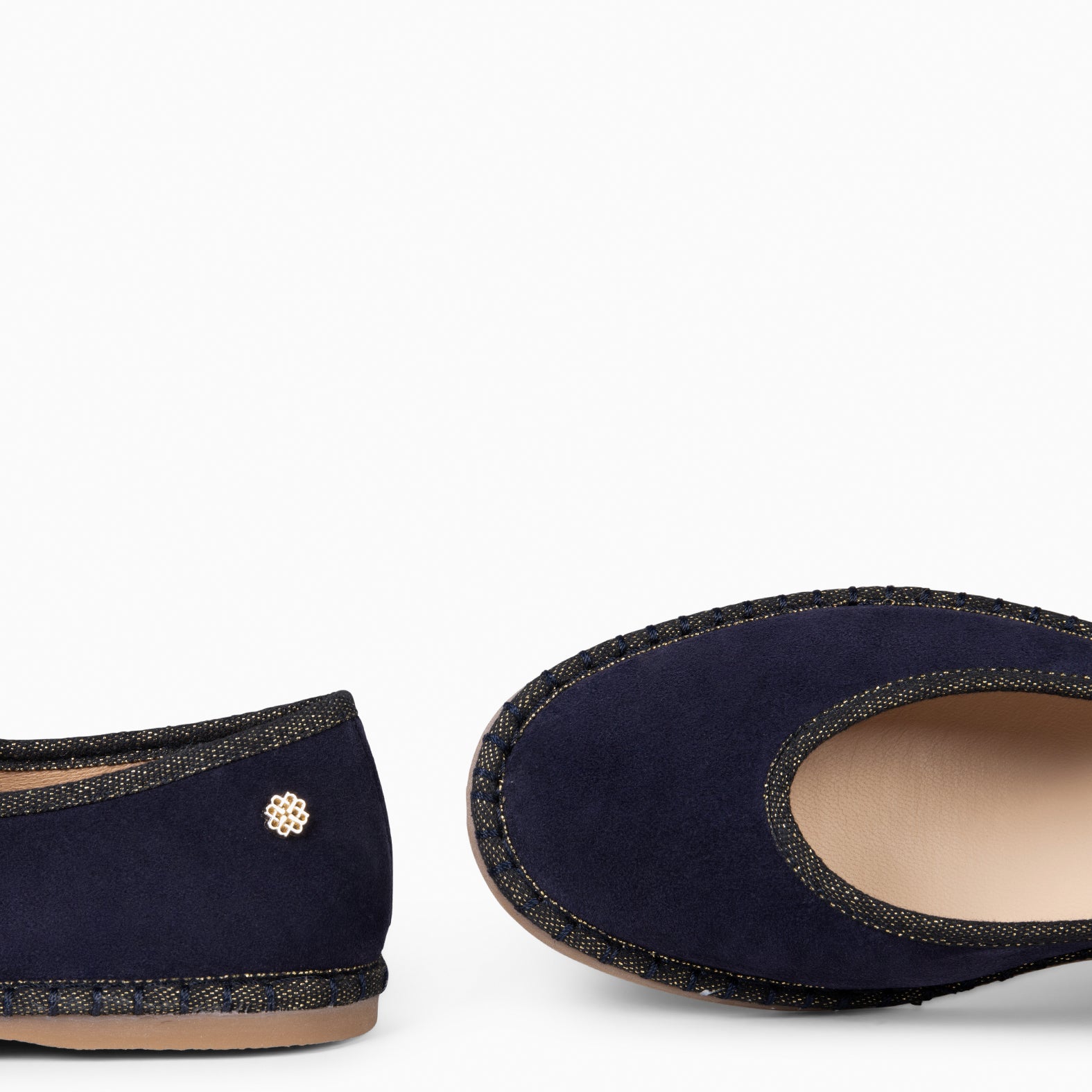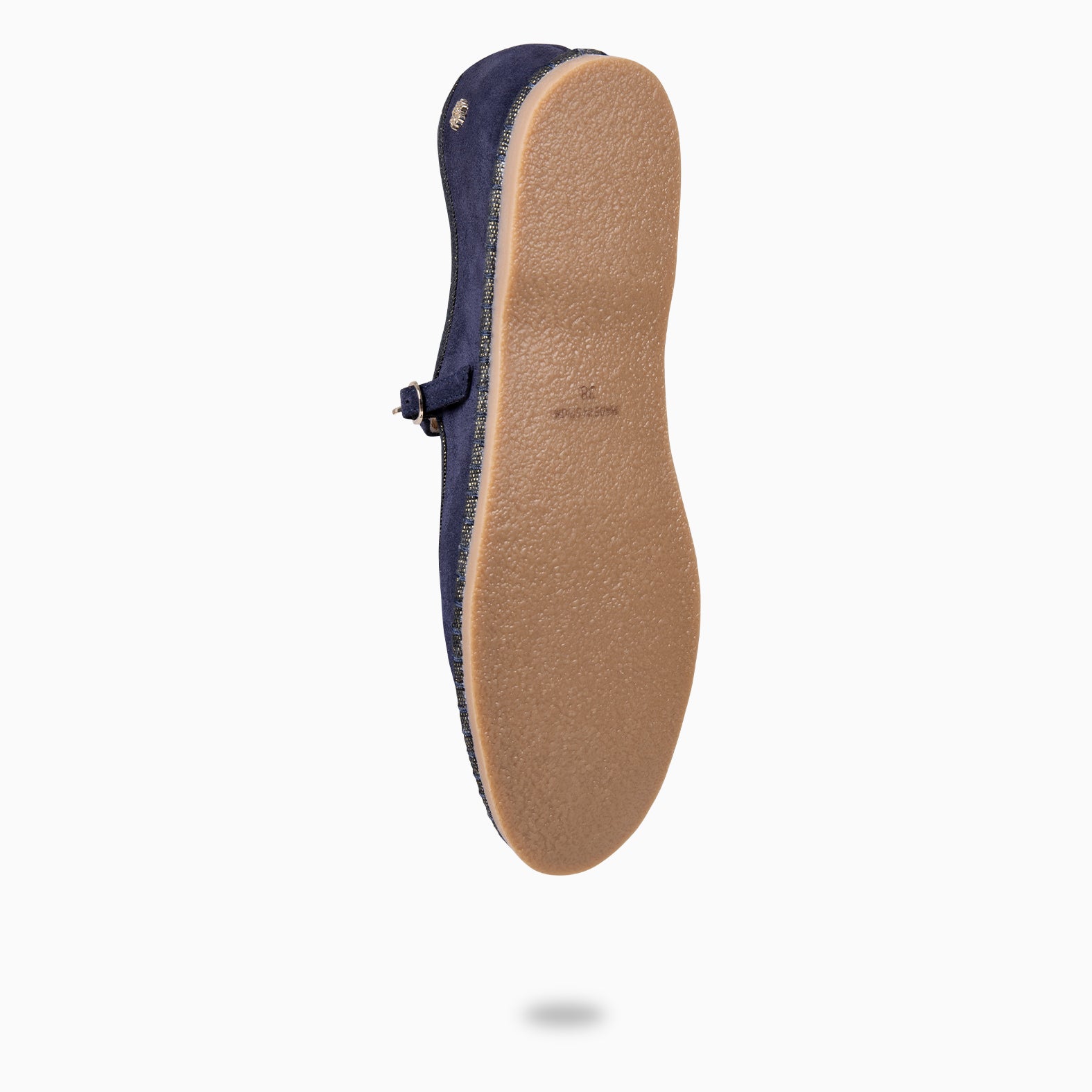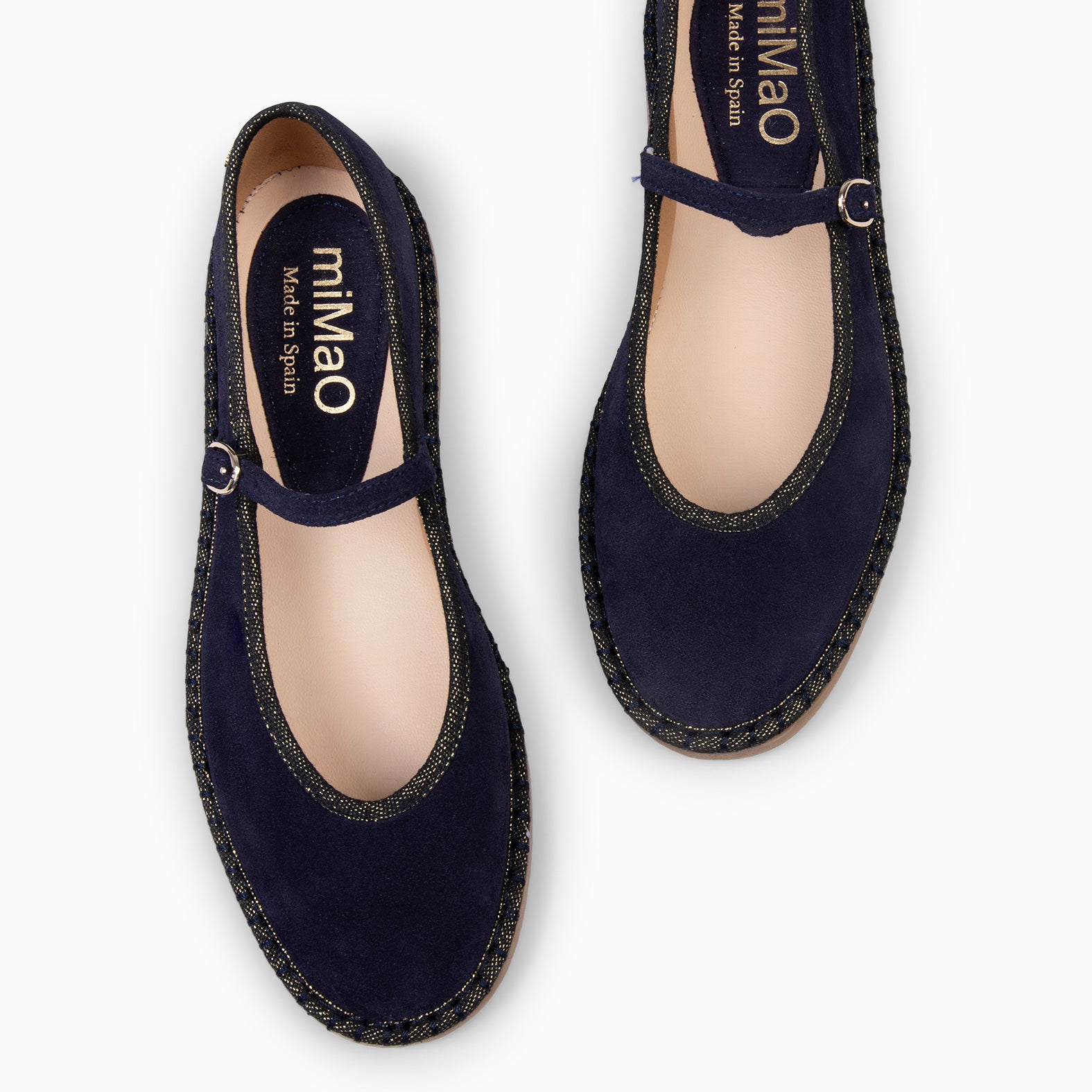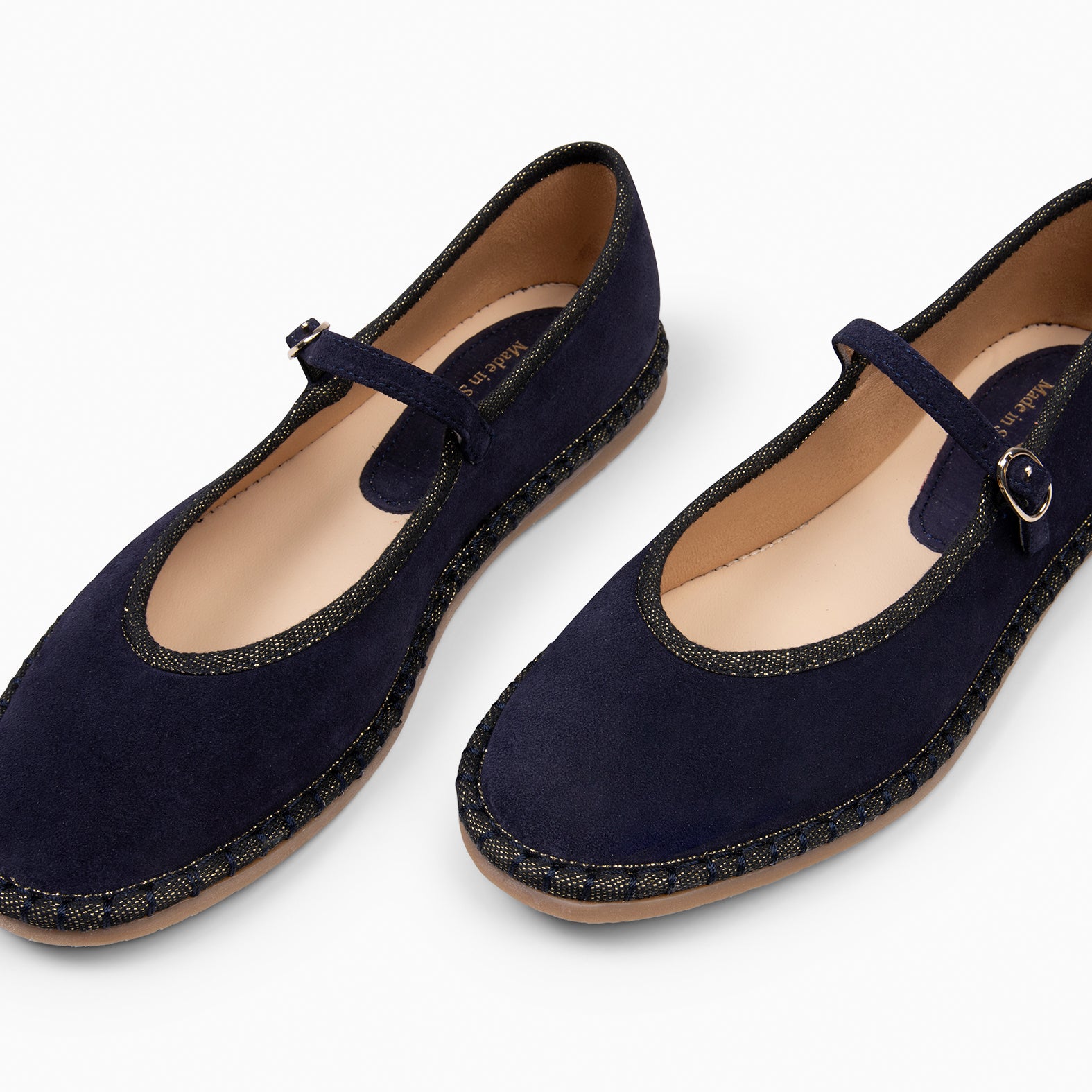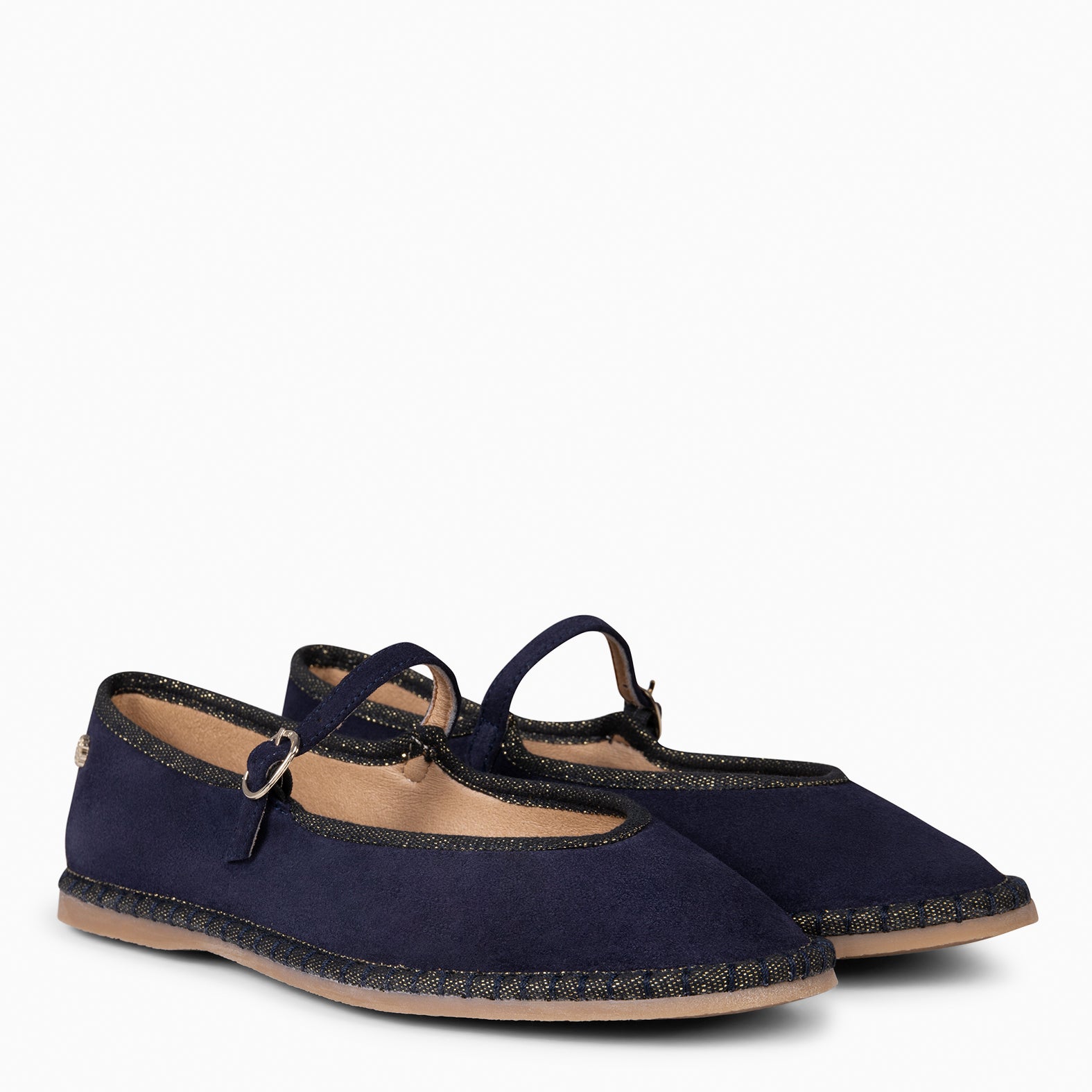 MARGARET - Mary Jane à bout rond en daim BLEU MARINE