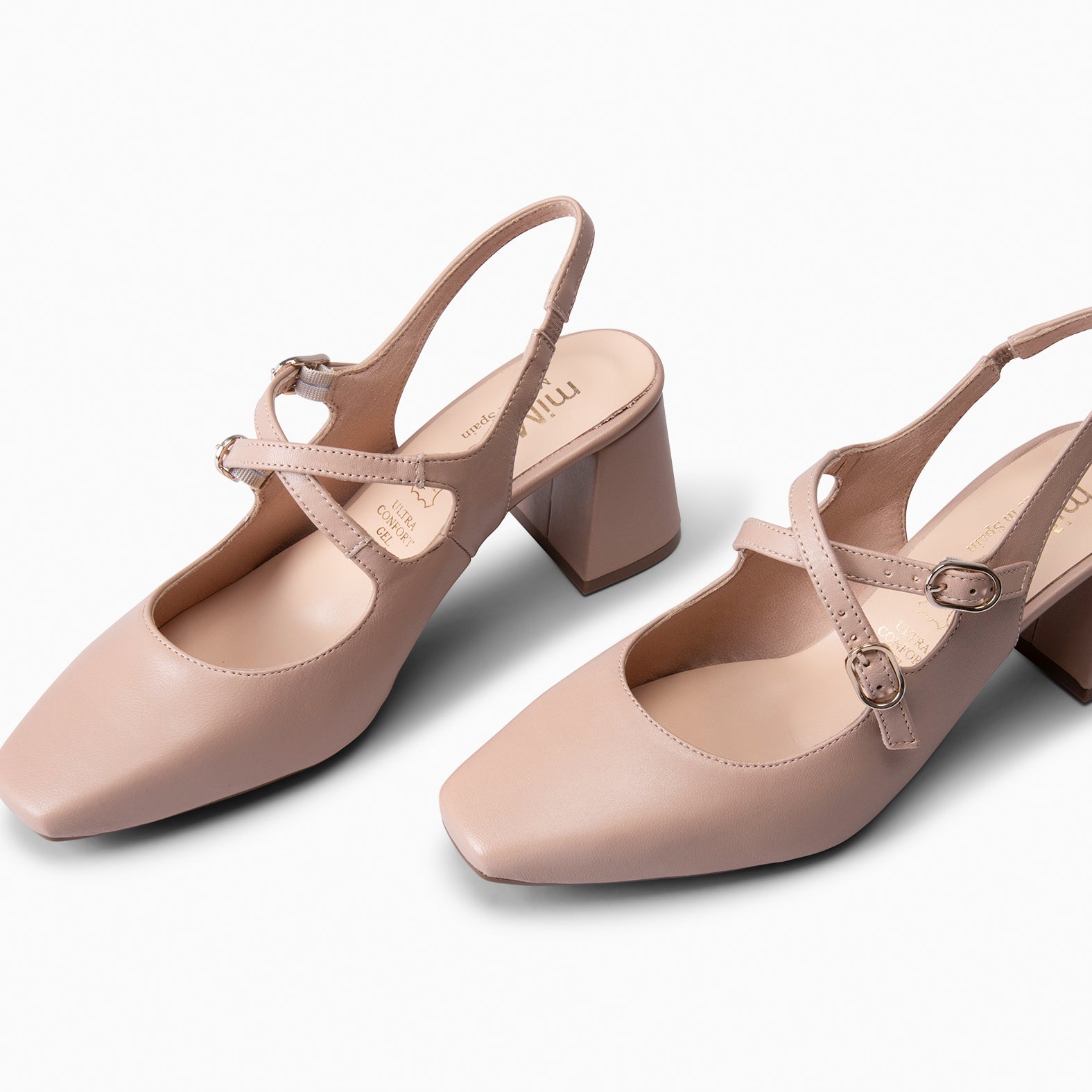Nous avons imaginé ces slingbacks avec un talon carré de 6 cm de haut disposant d’une semelle antidérapante pour vous offrir une grande stabilité. Niveau design nous avons dessiné un modèle avec un bout carré et un duo de lanières croisées réglables avec 5 positions d’ajustement. À l’intérieur nous lui avons ajouté notre innovante technologie Ultra Confort Gel avec sa Goutte Gel qui protège votre métatarse de l’impact du poids du corps à chaque pas sur la voûte plantaire. Vous allez adorer porter ces slingbacks !