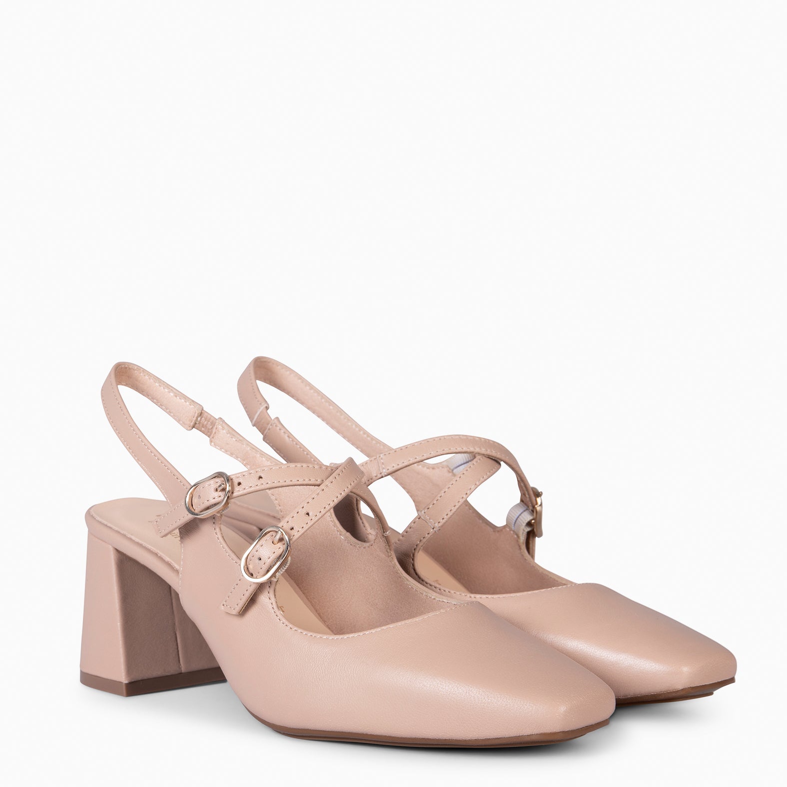 NAMIBIA – Slingbacks à talon carré et lanières croisées NUDE