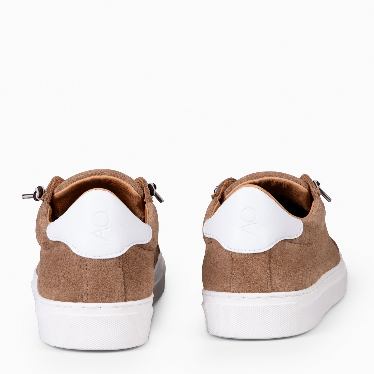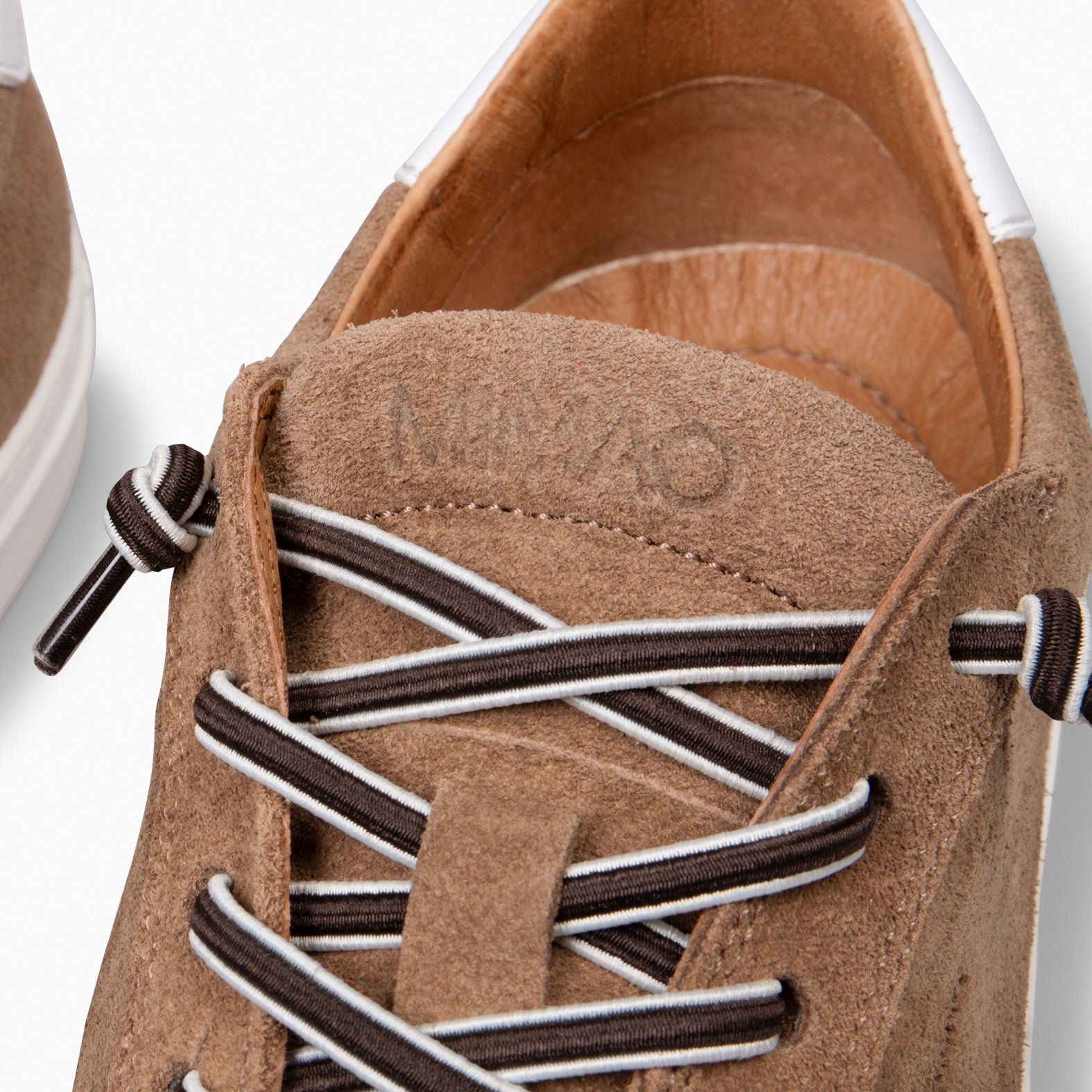 Découvrez notre tout nouveau modèle de sneakers en daim pour homme. Cette paire de baskets pour homme est fabriqué artisanalement dans nos ateliers et elle fut imaginée avec des lacets élastiques et une épaisse semelle extérieure antidérapante de 3 cm.
