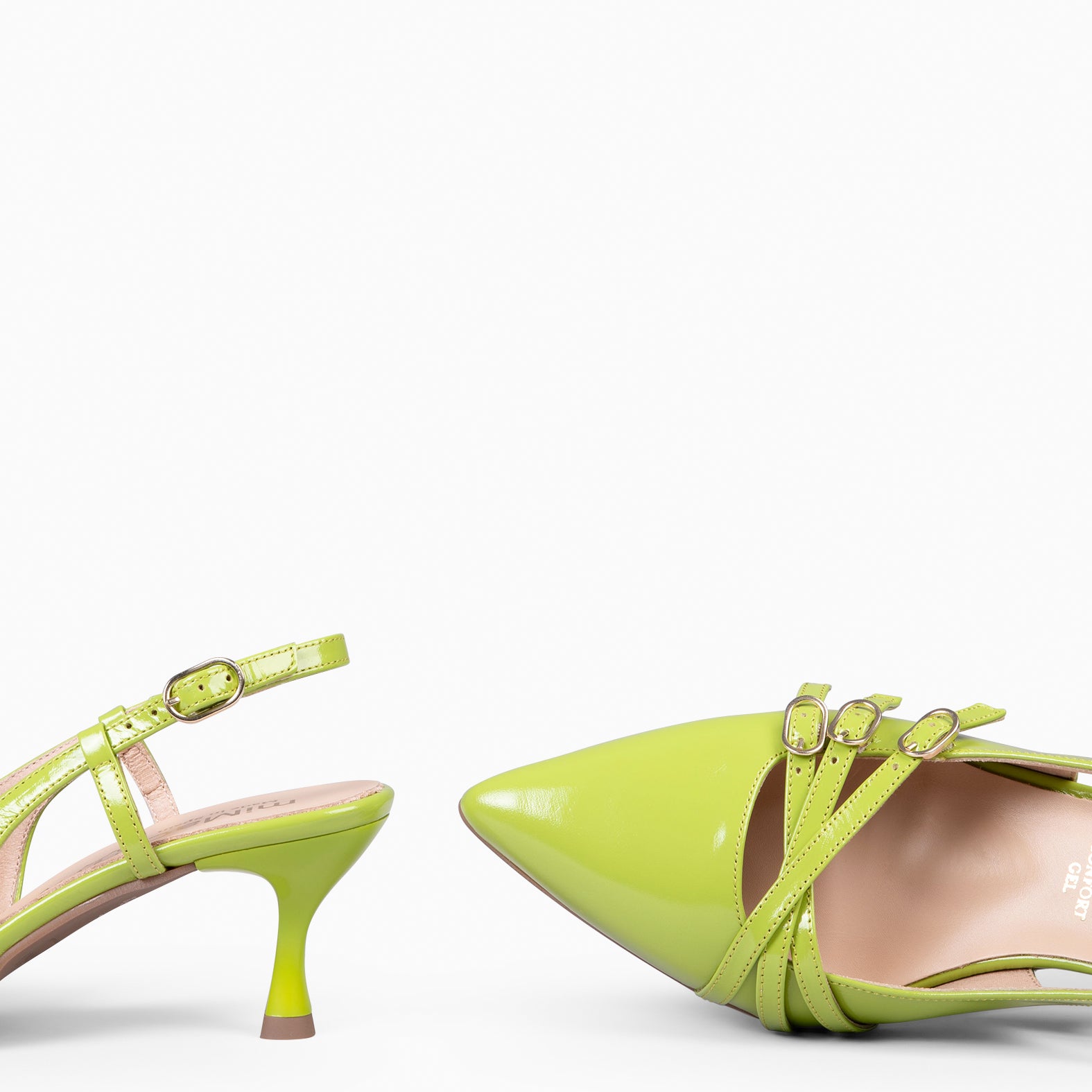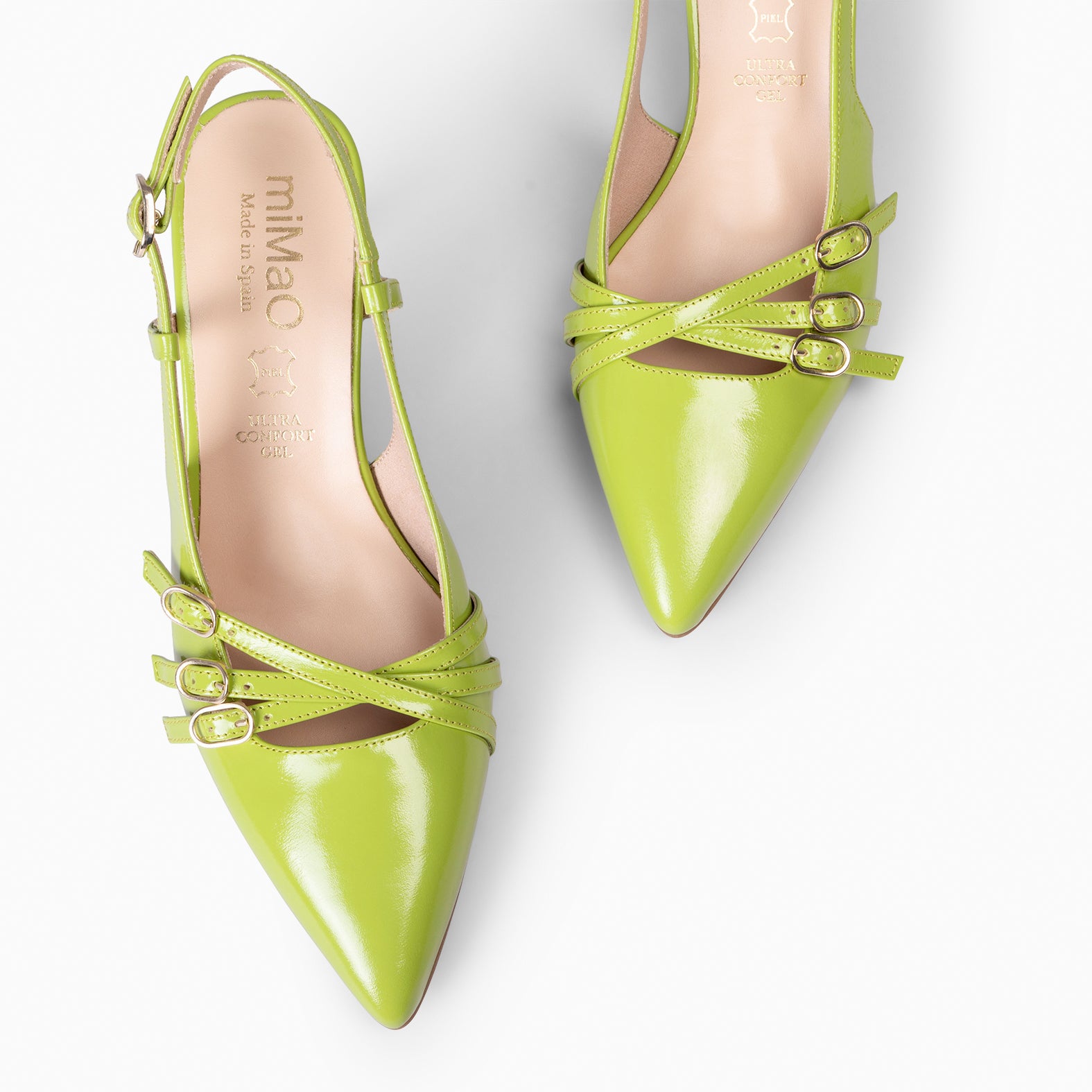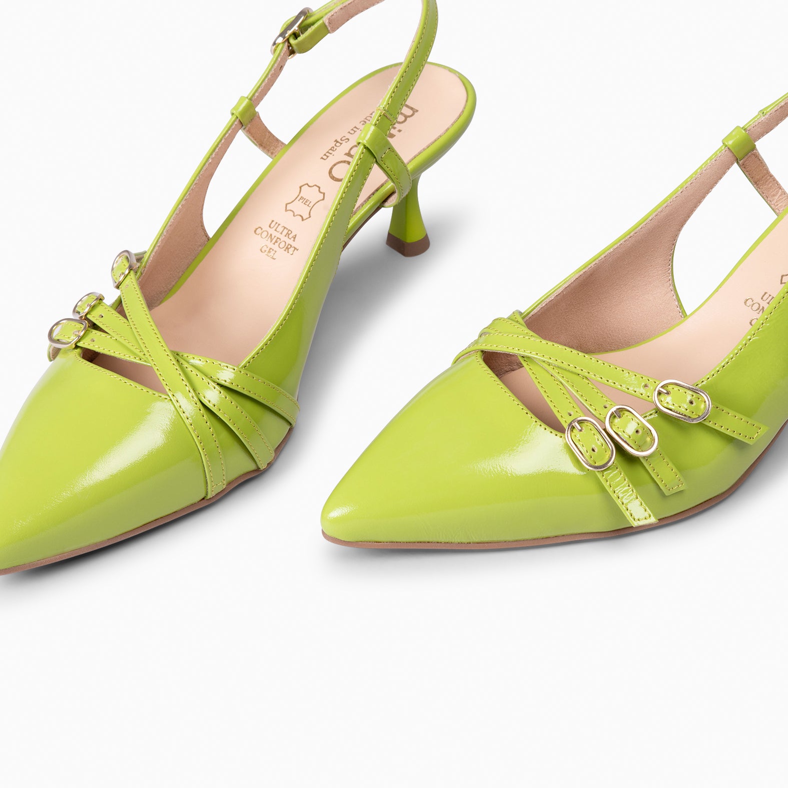 RITA – Slingbacks à talon kitten en cuir vernis VERT