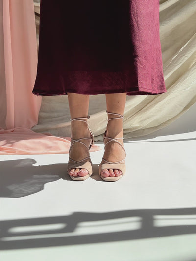Ce nouveau modèle de sandales à talon pour femme est un énorme coup de cœur de notre collection printemps-été. Une paire de chaussures pour femme fabriquée en daim avec un laçage à la cheville, des sandales à porter pour toutes les occasions spéciales : mariage, diner, soirée, discothèque… C’est la paire de l’été à avoir dans son dressing !