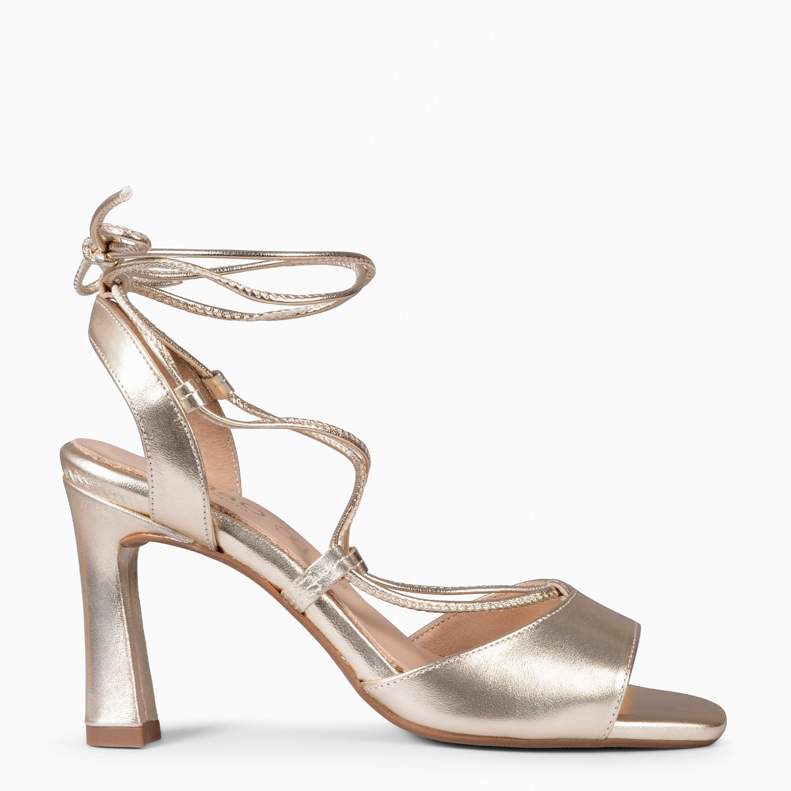 MONICA - Sandales à talon haut et laçage cheville DORÉ