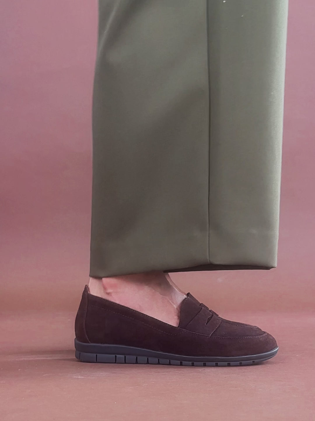 Fabriqués en daim hydrofuge de la plus haute qualité, ces mocassins à petit talon compensé sont spécialement conçus de manière artisanale pour le confort total de vos pieds. Une des particularités de ce modèle est leur design en forme de masque sur le cou-de-pied offrant ainsi à cette paire de mocassins un look intemporel.