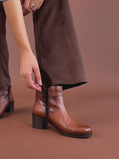 LEMY - Bottines élégantes en cuir CAMEL