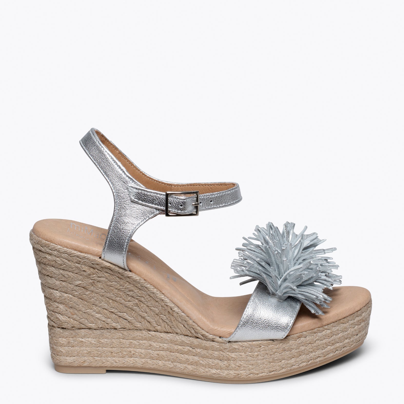 ZAHARA Cuña de esparto con plataforma y flecos PLATA