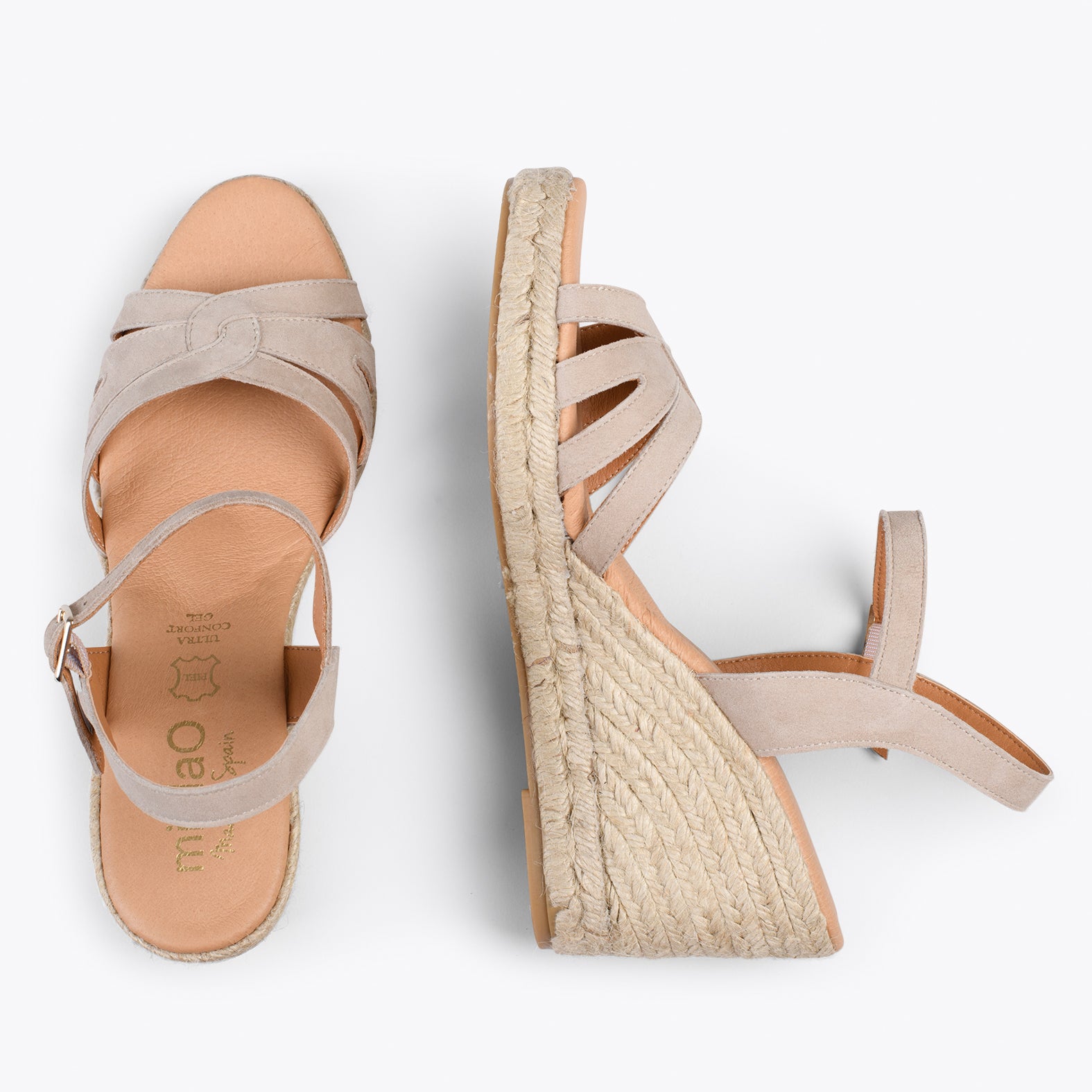 OYAMBRE - Sandalias con cuña de esparto Cangrejera ARENA