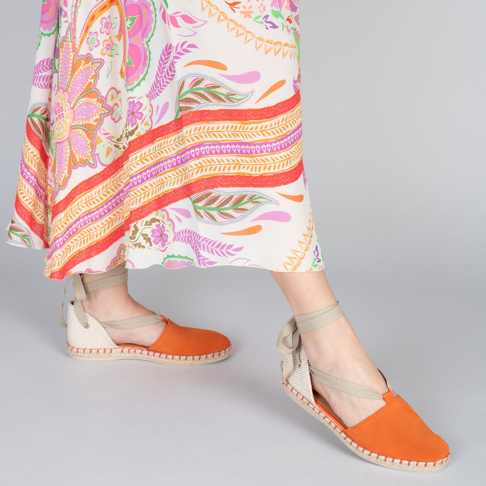 ALGARVE – Alpargatas abiertas y planas de mujer NARANJA