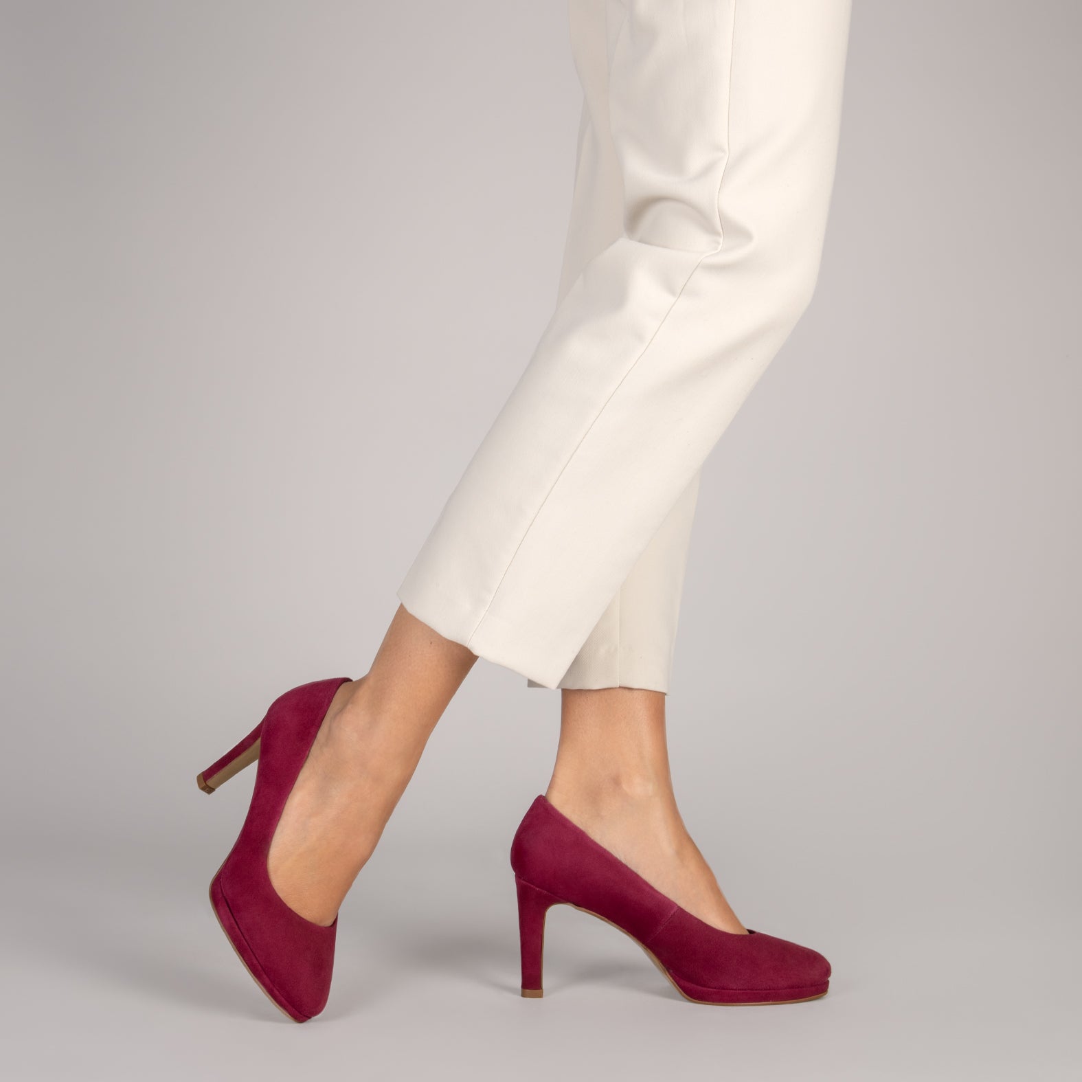 Nuevos zapatos Granates de tacón alto con plataforma Otoño Invierno 2023-24. Son unos zapatos elegantes y versátiles que podrás utilizar para muchos de tus looks. Estos salones son de piel ante de la mejor calidad.