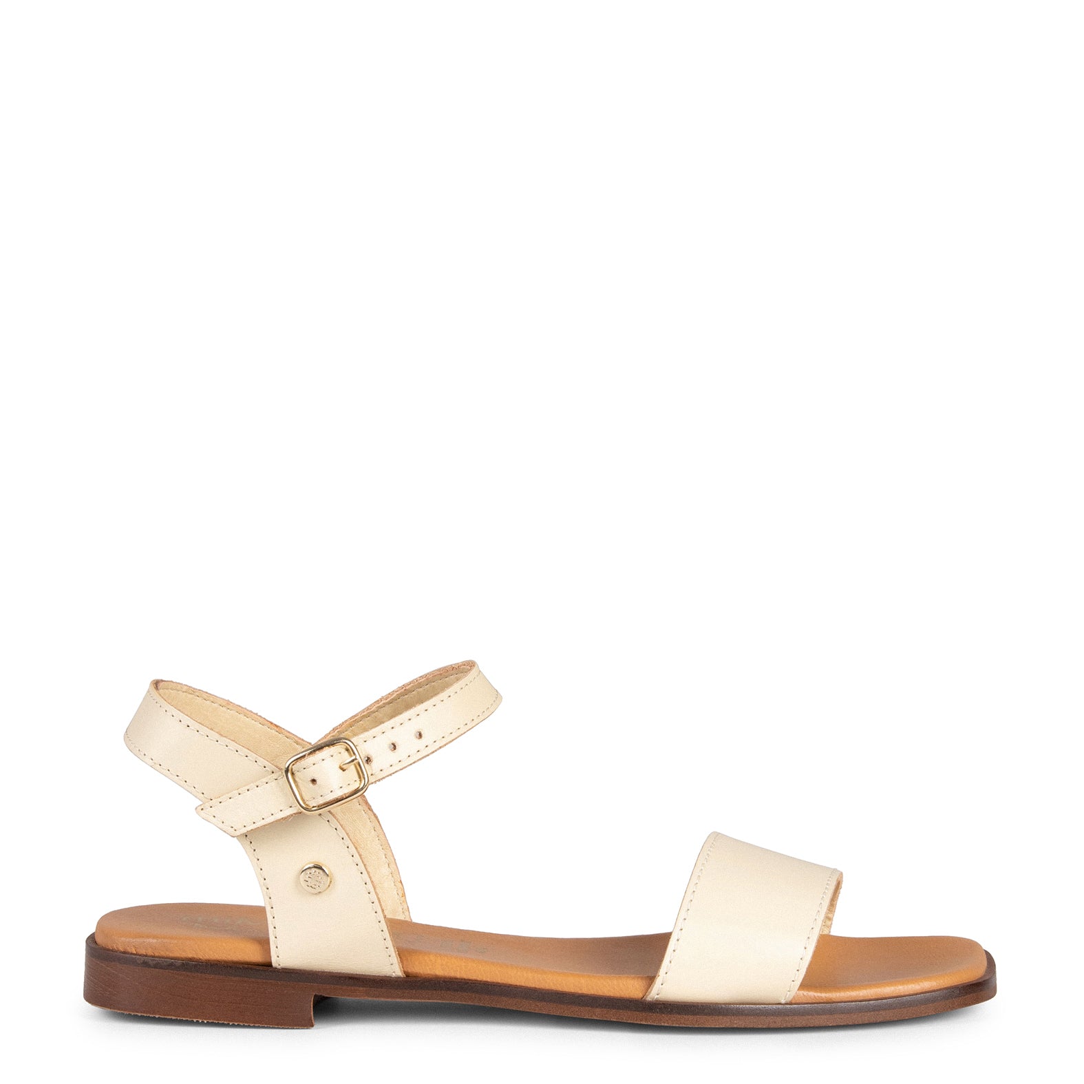 Sandalias planas de mujer de diseño sencillo que te acompañará en tu día a día. Están fabricadas en piel de color Beige.
