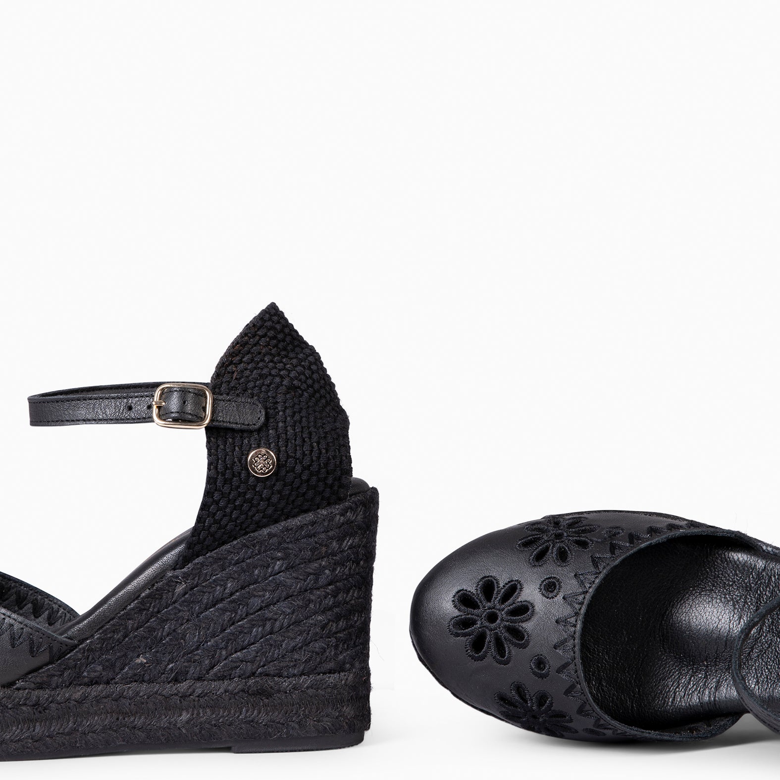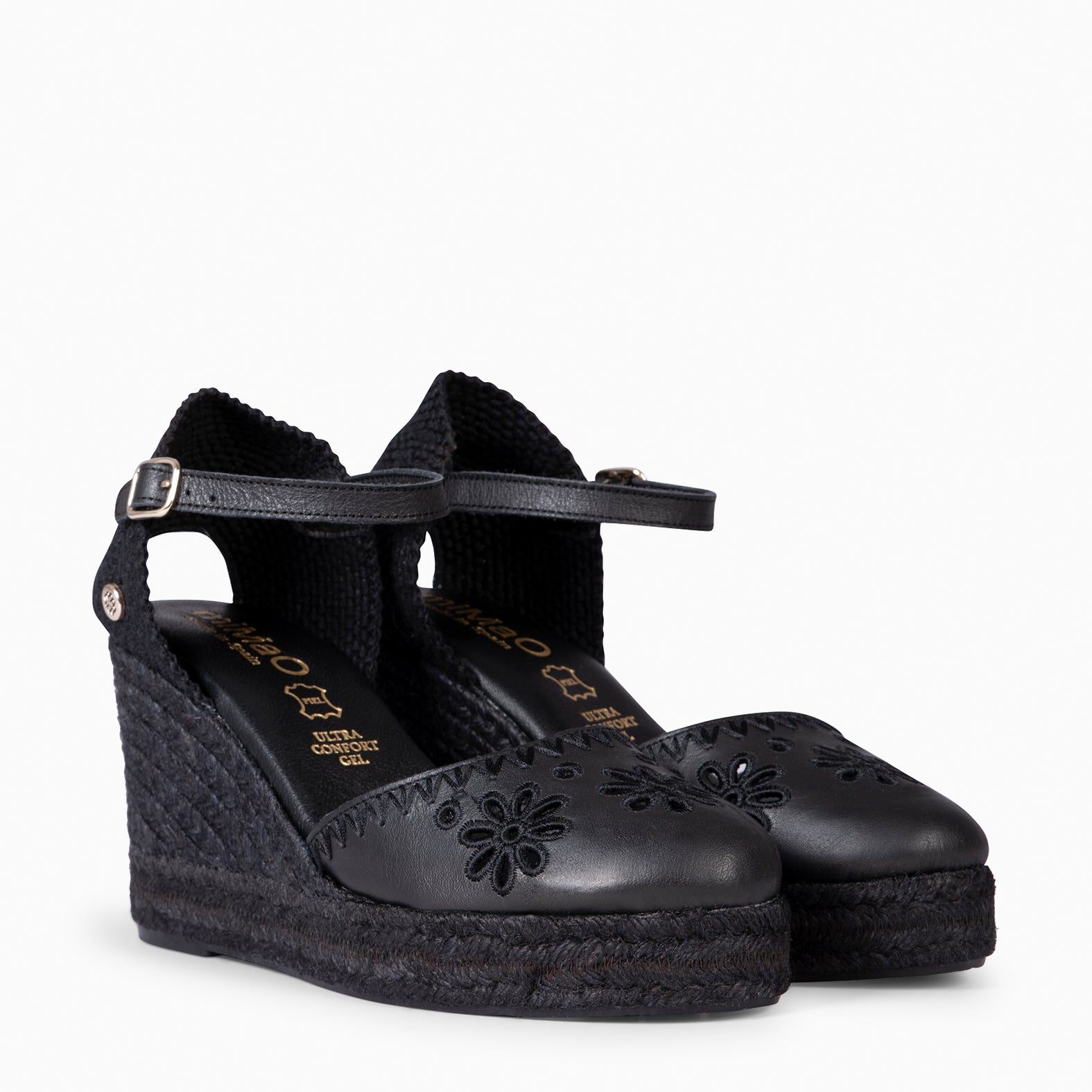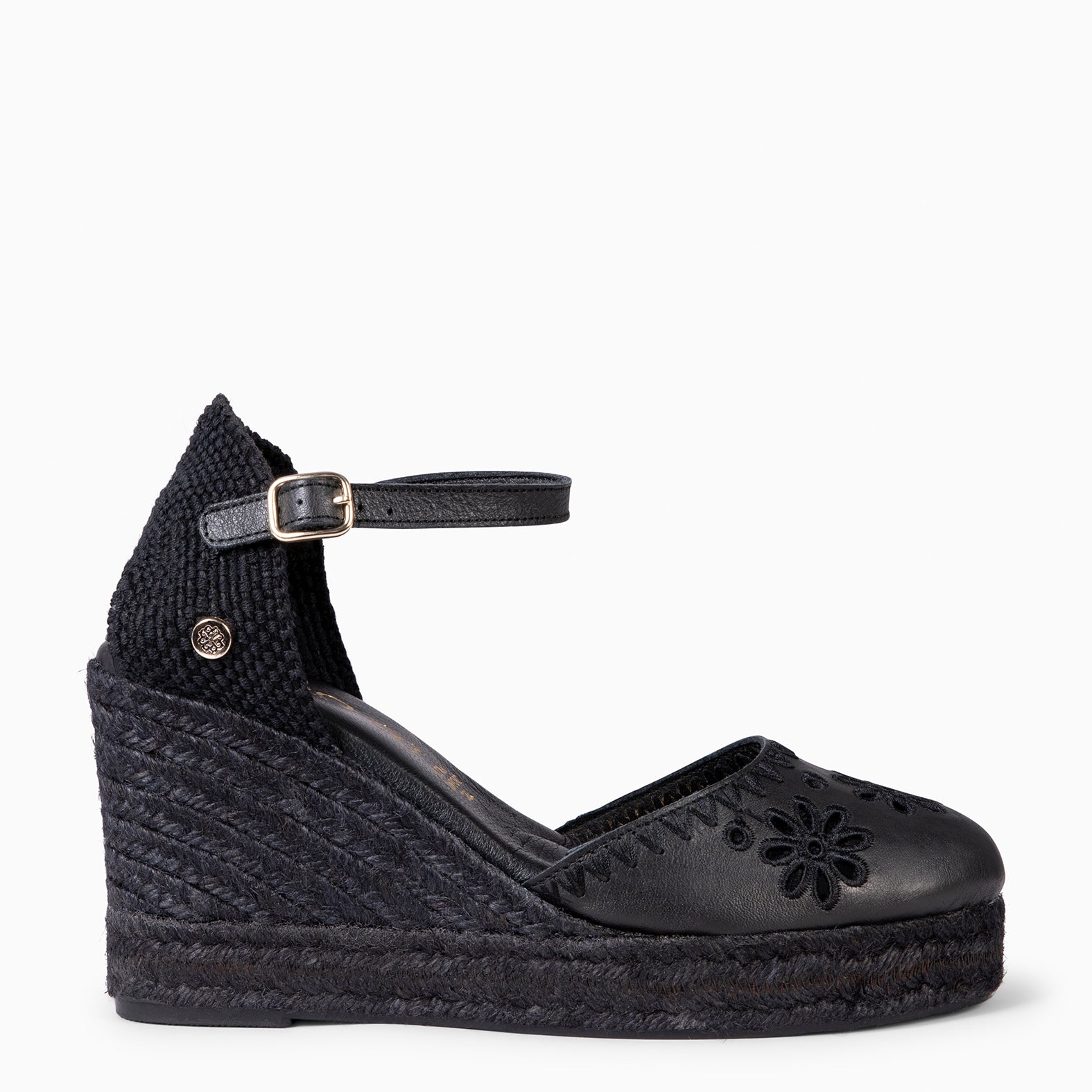 Esta cuña de estilo ibicenco en color blanco es un complemento imprescindible para cualquier ocasión. Su pala de napa blanca presenta un exquisito bordado inglés, conocido como "shaugalo", que añade un toque de elegancia con sus dibujos abiertos.