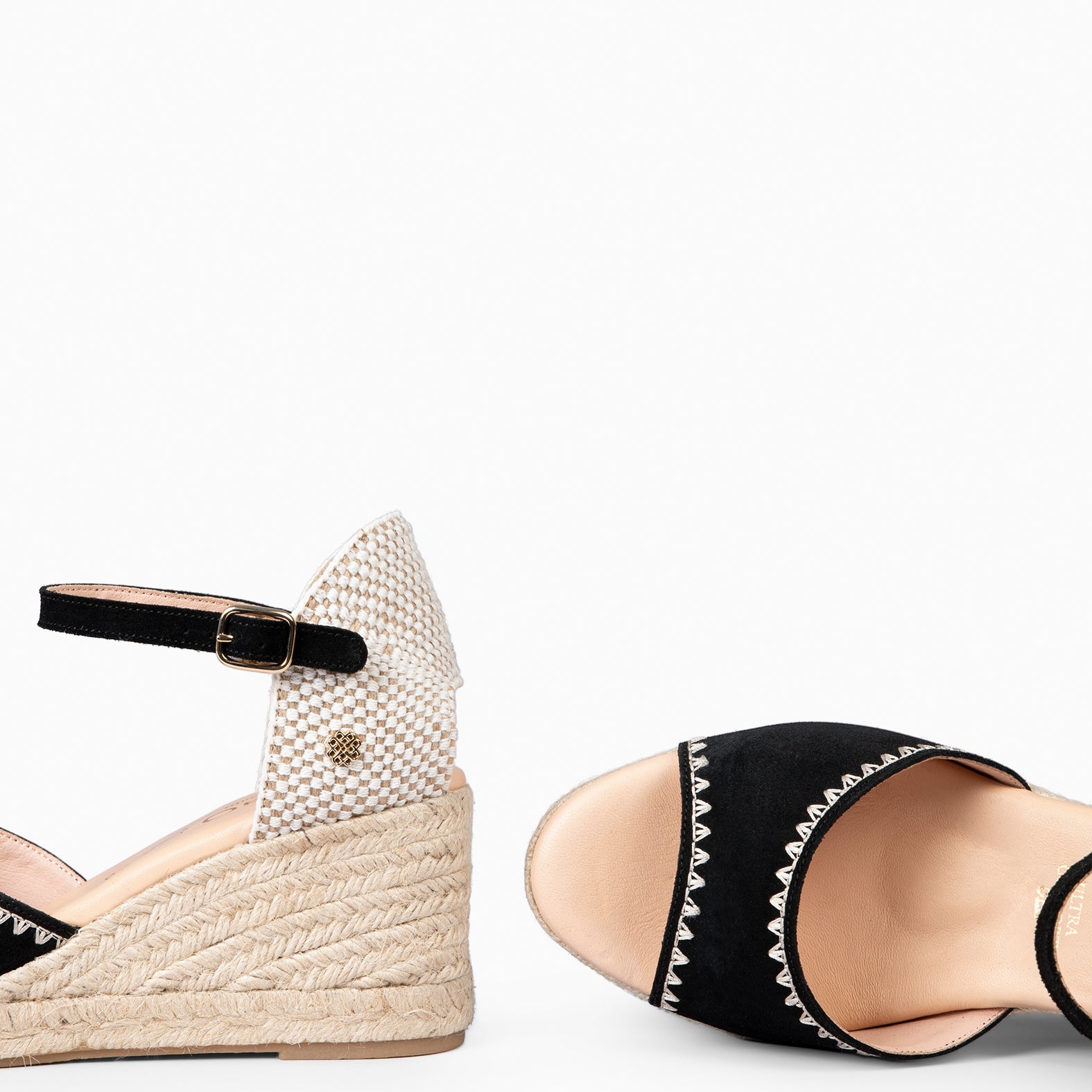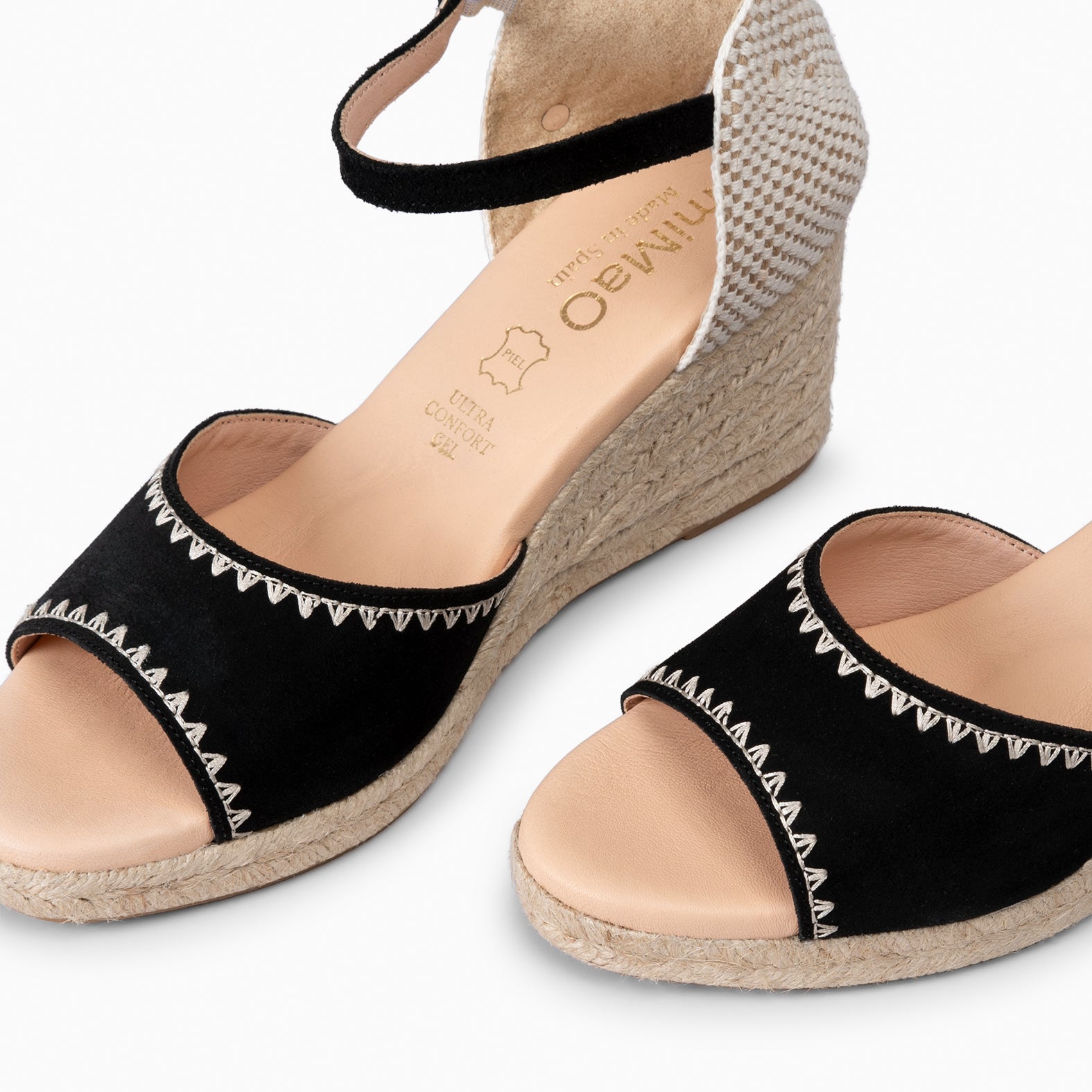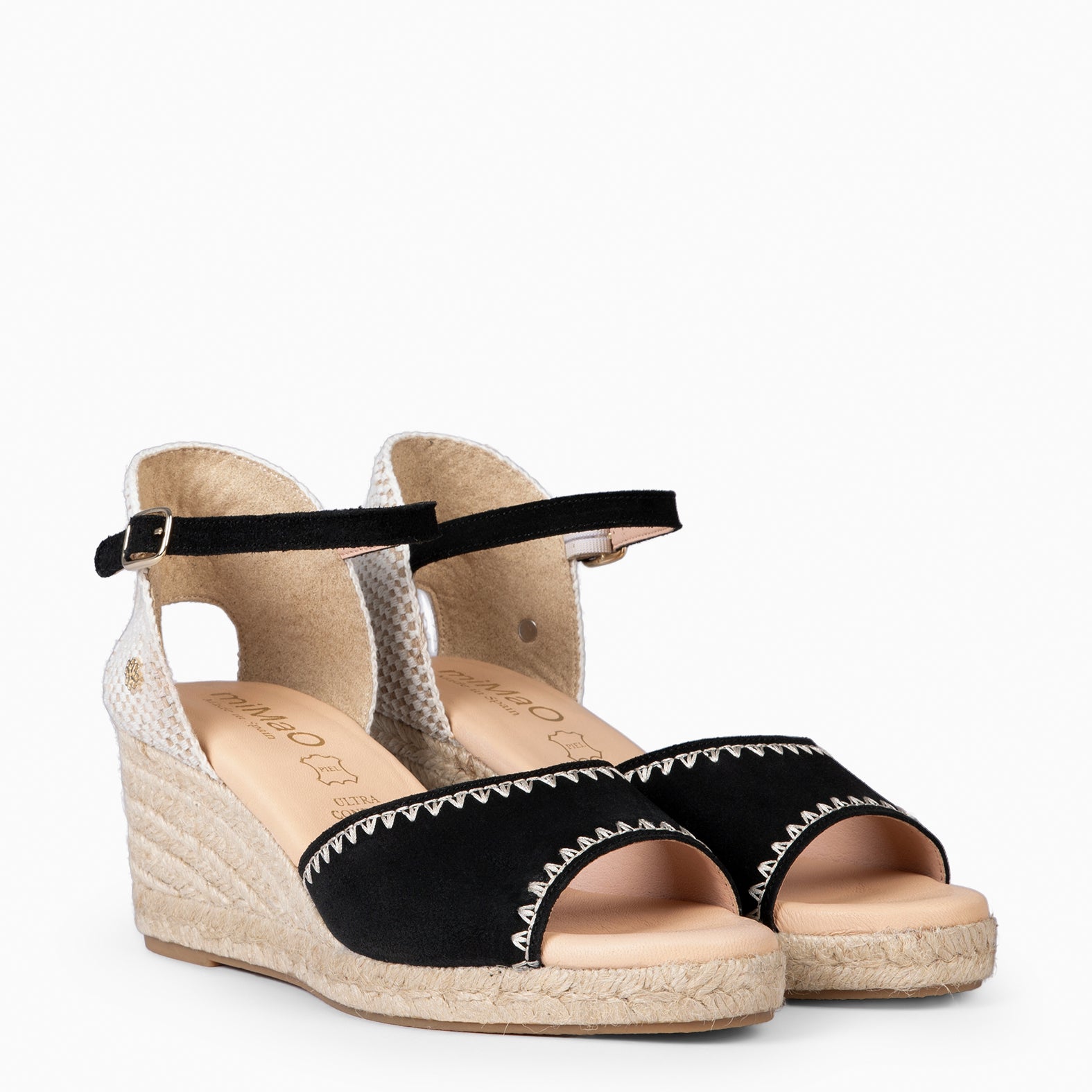 Esta nueva cuña de esparto está hecha de piel de serraje y napa, cuenta con una altura de 7.5cm y una plataforma de 1.5cm. El diseño de la hebilla, hacen que las cuñas de esparto estén siempre sujetas al pie.