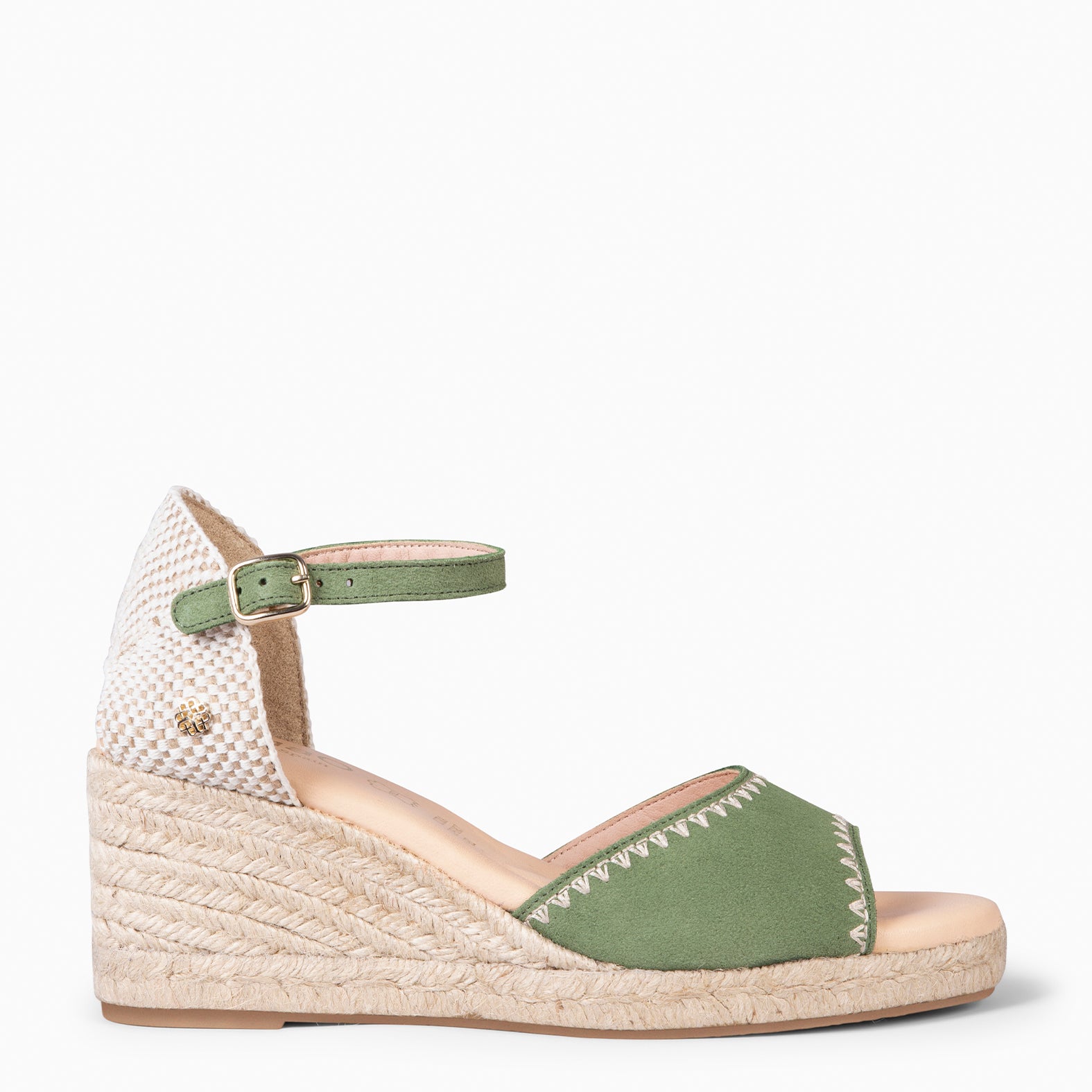 Esta nueva cuña de esparto está hecha de piel de serraje y napa, cuenta con una altura de 7.5cm y una plataforma de 1.5cm. El diseño de la hebilla, hacen que las cuñas de esparto estén siempre sujetas al pie.