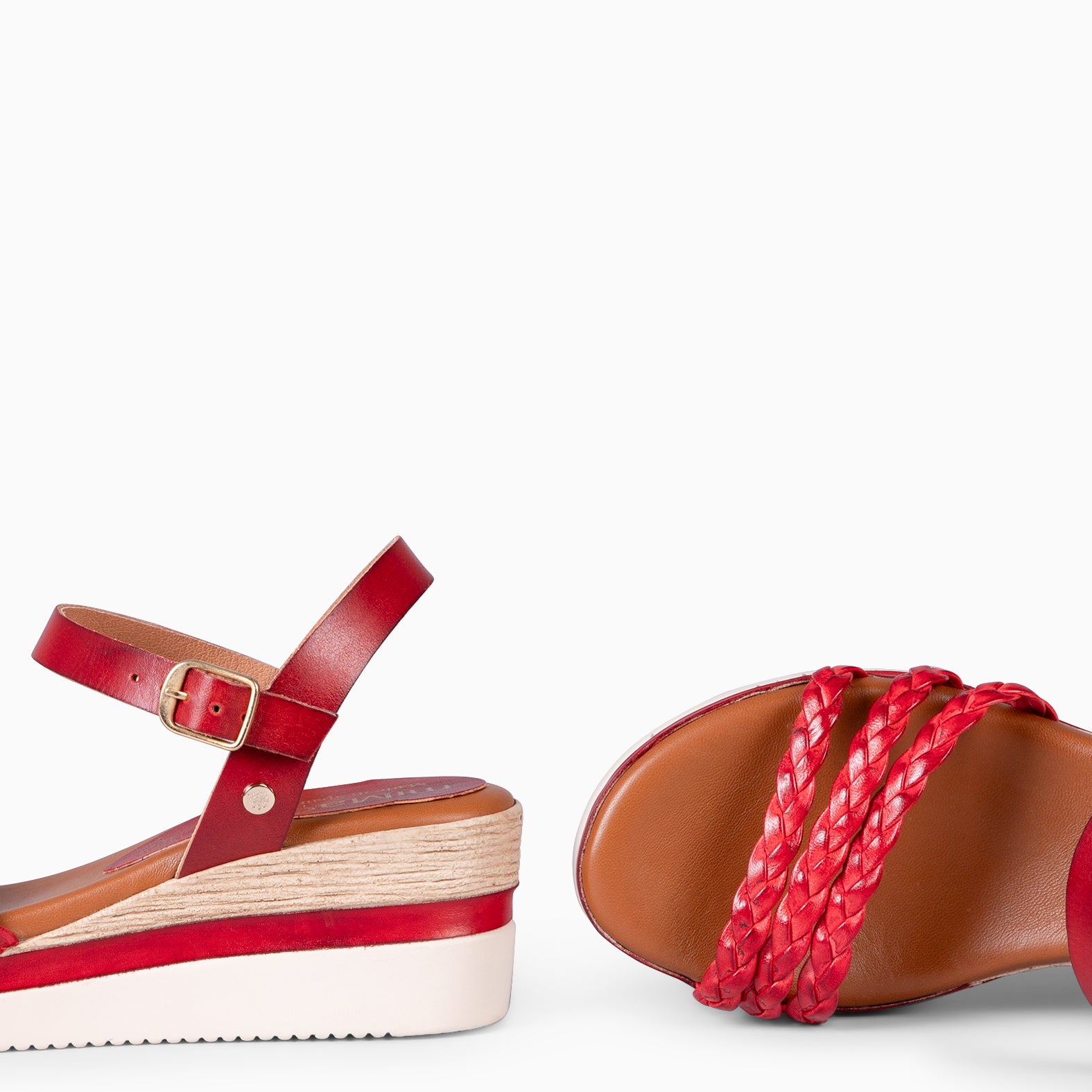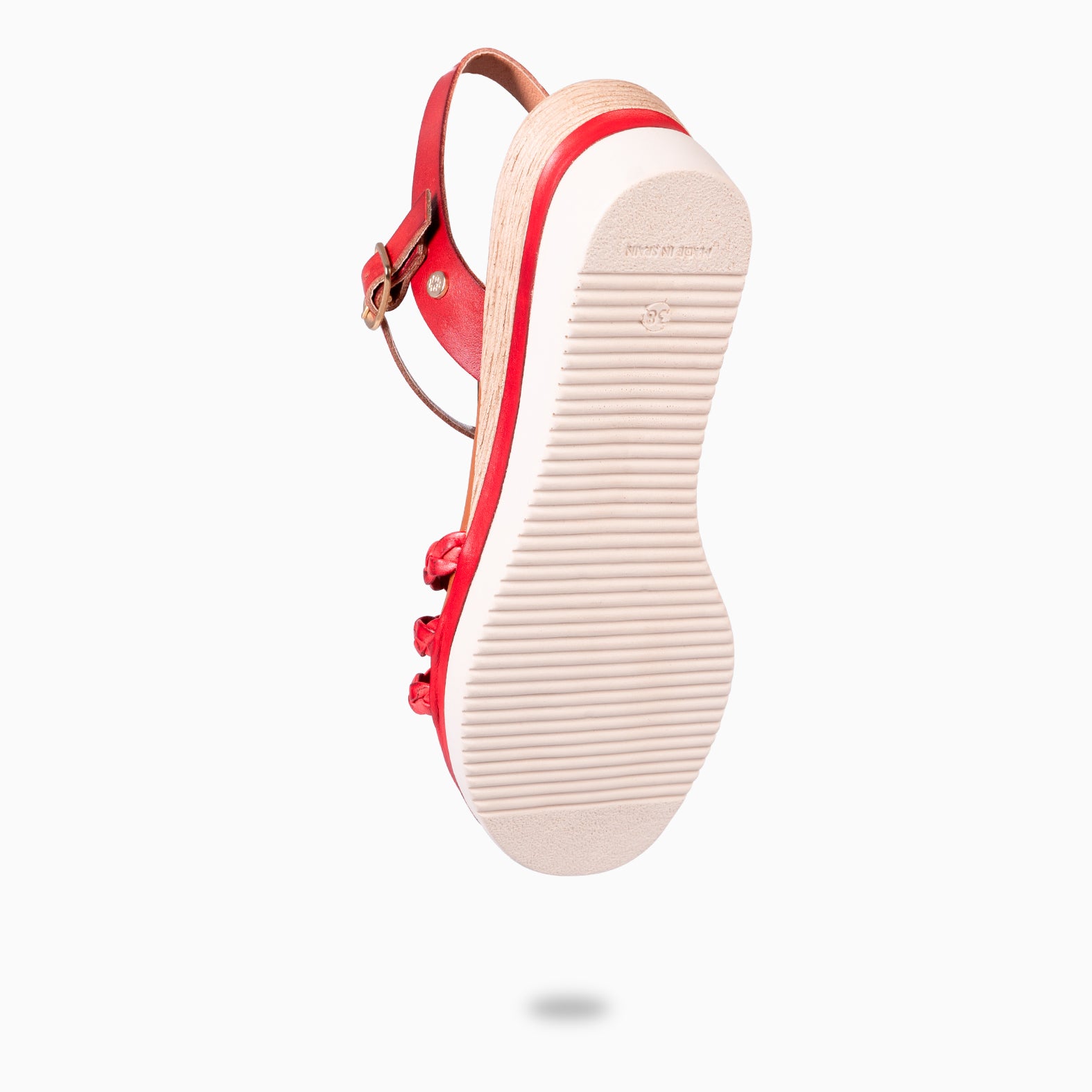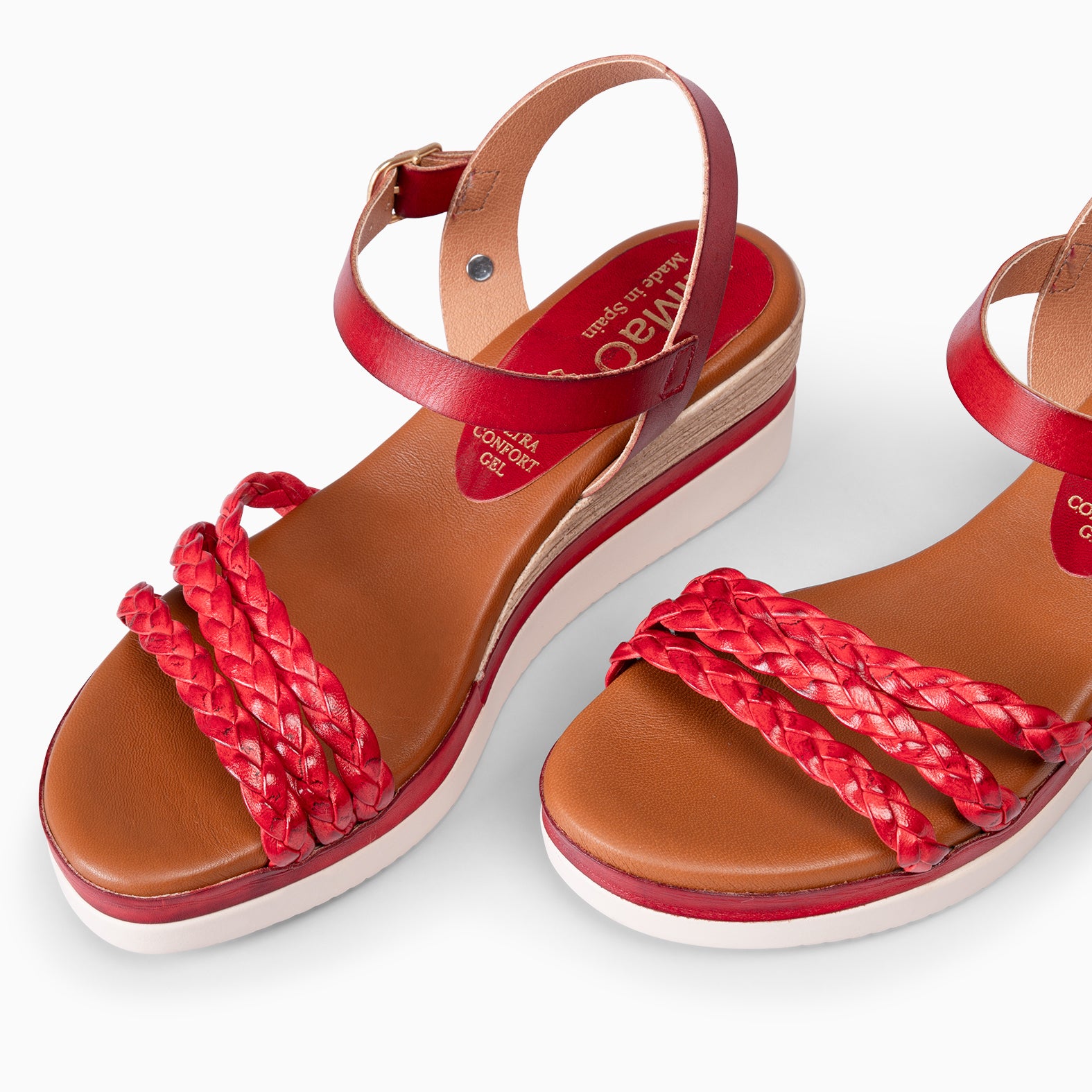 Nuestra nueva sandalia con cuña combina estilo y comodidad con una altura de 5.5 cm y una plataforma de 2 cm, proporcionando una pisada estable y confortable.