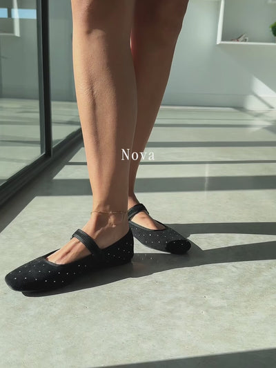 NOVA - Merceditas con puntera cuadrada con tachas en NEGRO