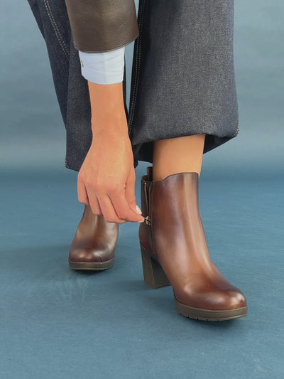 SABRINA – Botin de tacón alto con elástico lateral MARRON