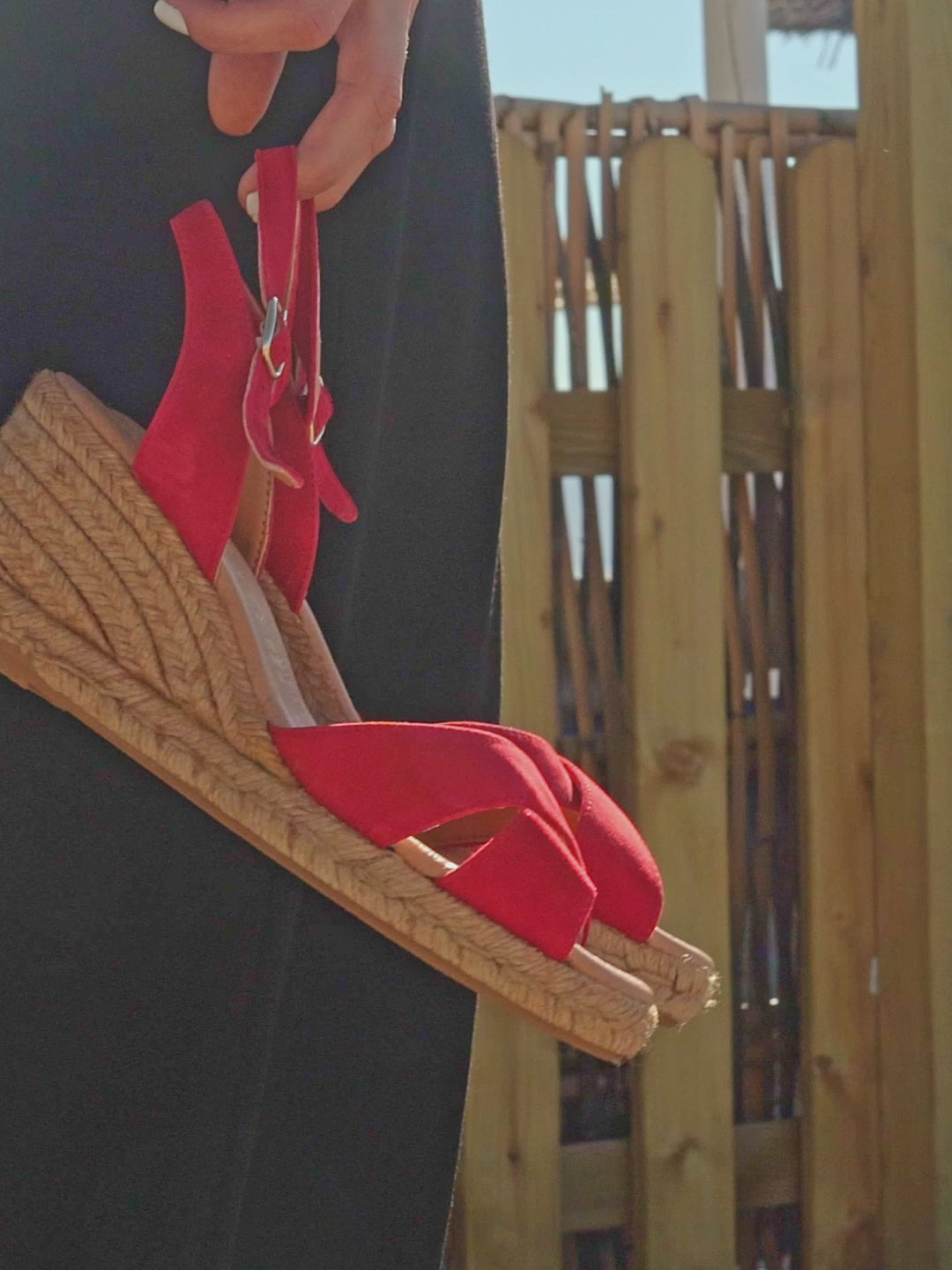 Cuñas de esparto hechas en España de forma artesanal. Cuentan con un diseño en tiras cruzadas. Tienen una hebilla que permite ajustarlas al tobillo. Son ideales para utilizar en cualquier momento, tanto para ir a un evento especial, como para pasear.