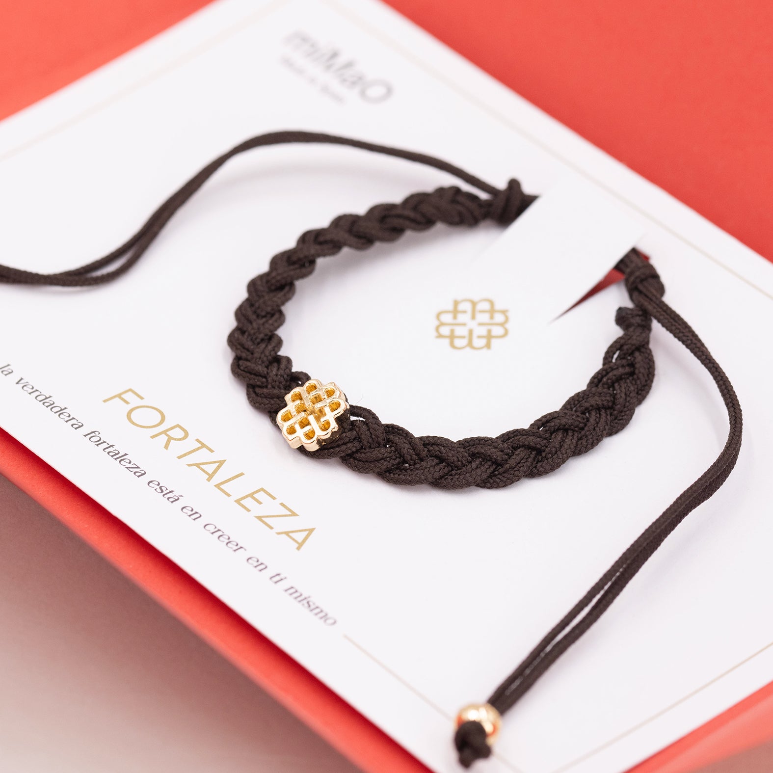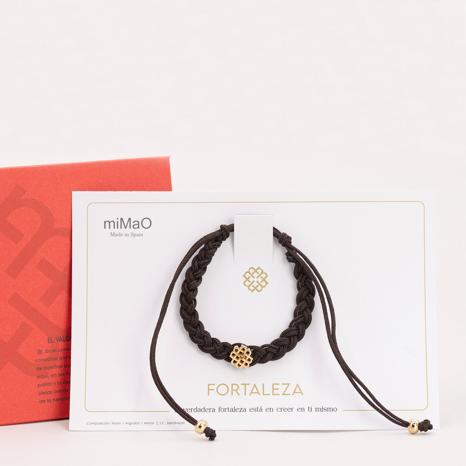 La pulsera de la fortaleza de miMaO está diseñada en un firme color marrón, elegido por nuestros diseñadores para representar la resiliencia y la estabilidad. Este tono terroso evoca la conexión con la tierra, simbolizando la base sólida sobre la que se construye la fuerza interior. Inspirados en la solidez de la naturaleza, nuestros diseñadores han creado esta pieza única con métodos artesanales que capturan la esencia de la fortaleza en cada detalle.