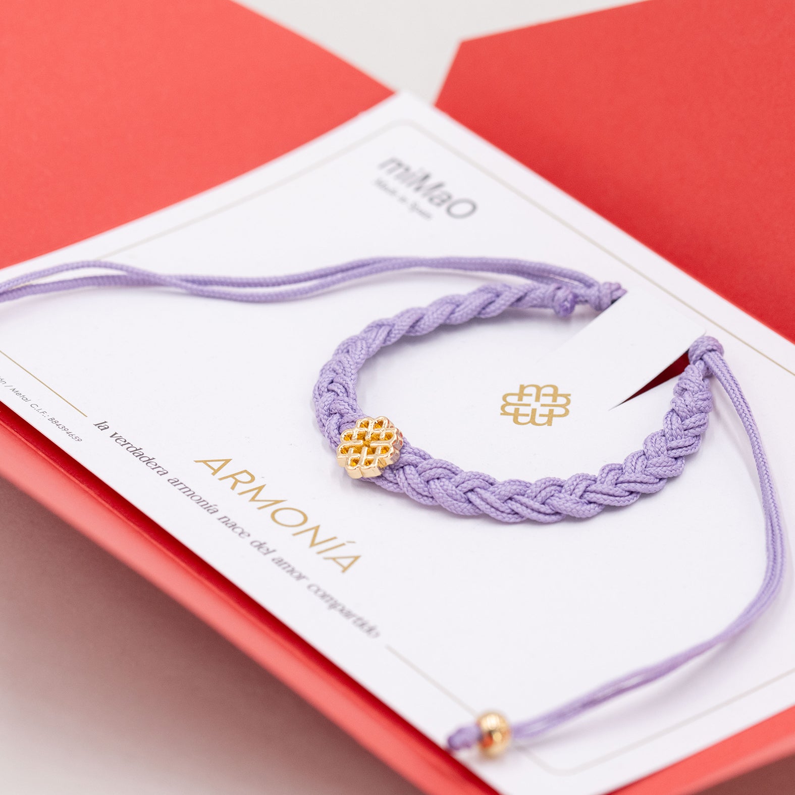 La pulsera de la armonía de miMaO está diseñada en un delicado color malva, escogido por nuestros diseñadores para representar la equilibrada conexión entre el cuerpo y la mente. Este tono suave evoca una sensación de paz y unidad, cualidades esenciales para alcanzar la armonía interior y exterior. Inspirados por la serenidad que transmite el malva, nuestros diseñadores han creado esta pieza utilizando técnicas de artesanía que reflejan la sutileza y equilibrio en cada detalle.