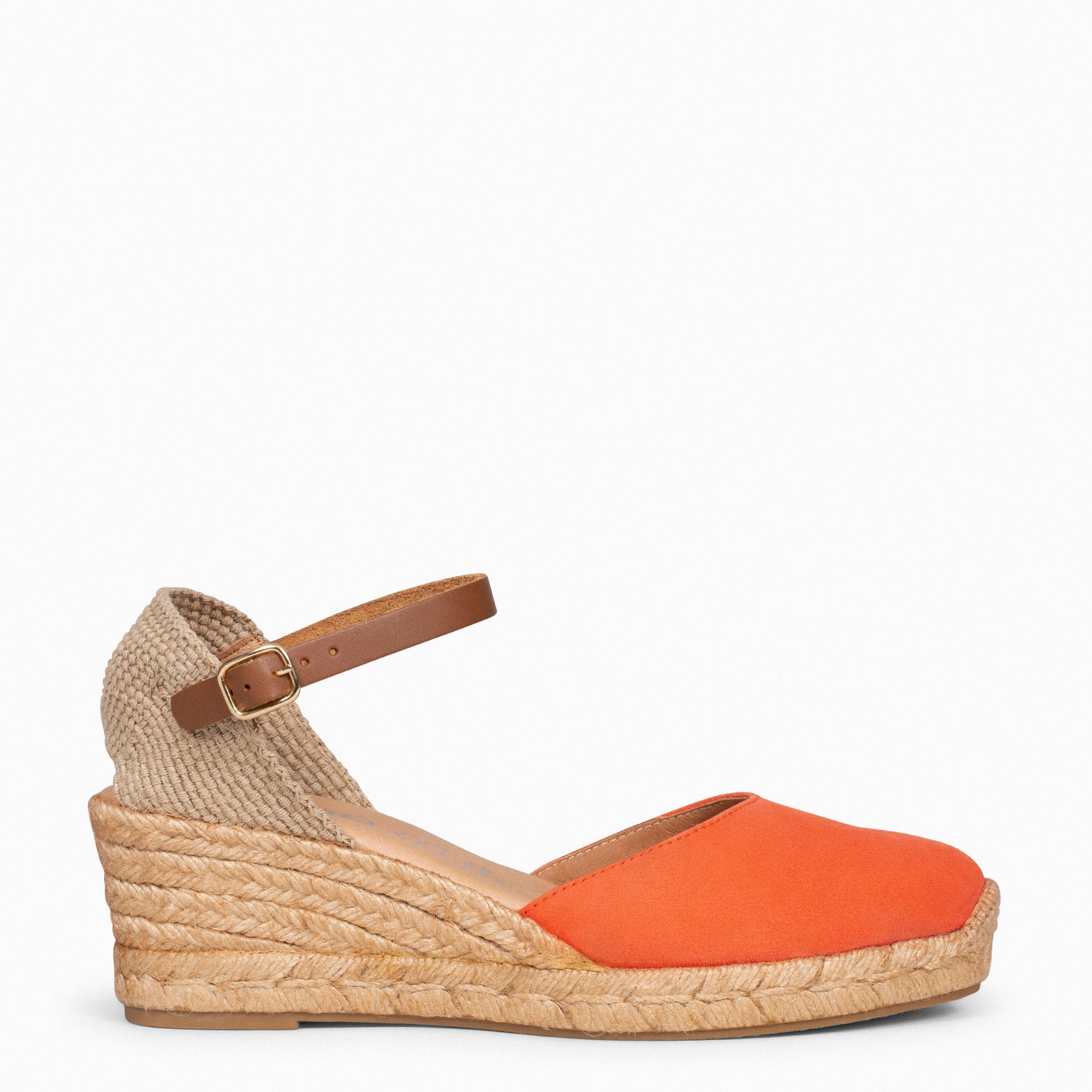 CALPE - CUNHAS DE ESPARTO COM TIRAS E FIVELA VERMELHO