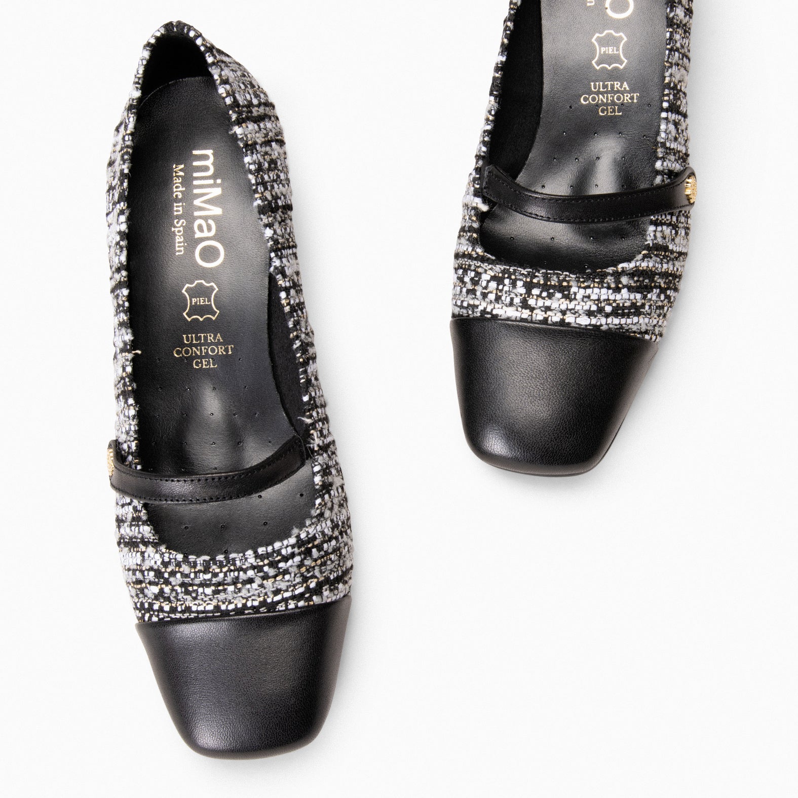 MARGOT - MARY-JANE DE SALTO COM BIQUEIRA TWEED PRETO