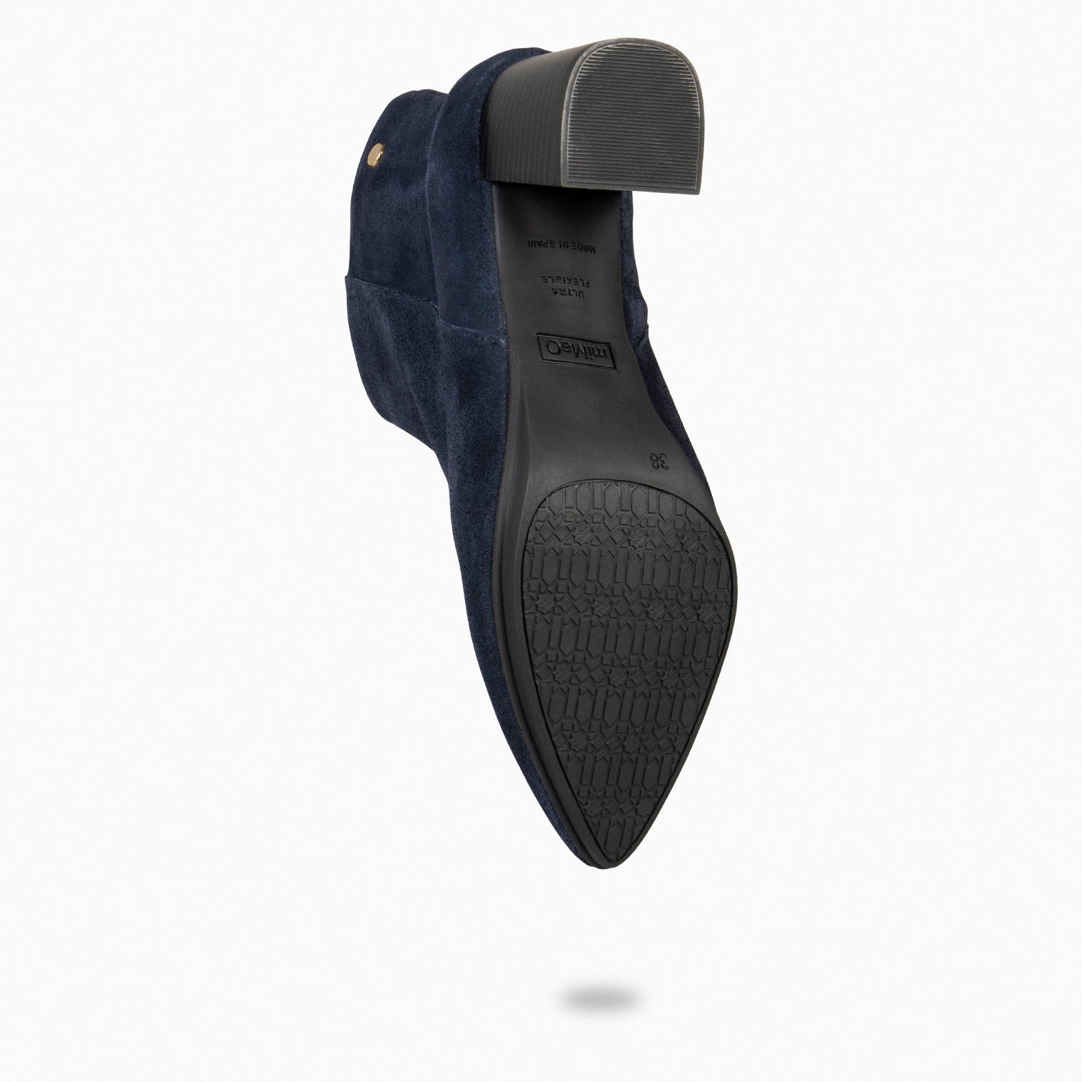 CITY - BOTINS DE SALTO GROSSO EM COURO DE CAMURÇA AZUL-MARINHO