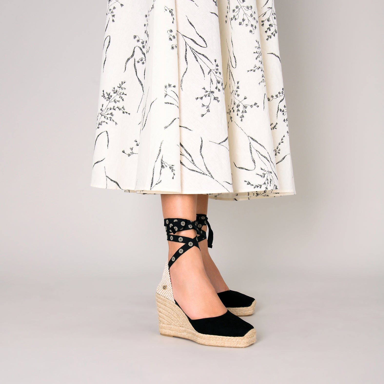 MOMBASA - SANDÁLIAS DE CUNHA DE ESPARTO COM LAÇO PRETO