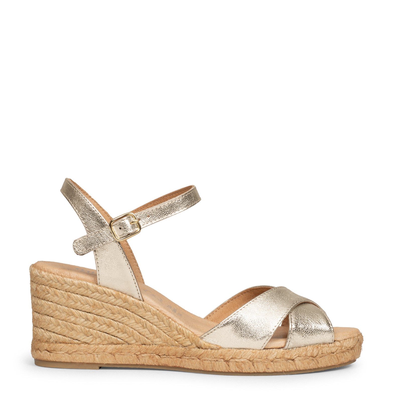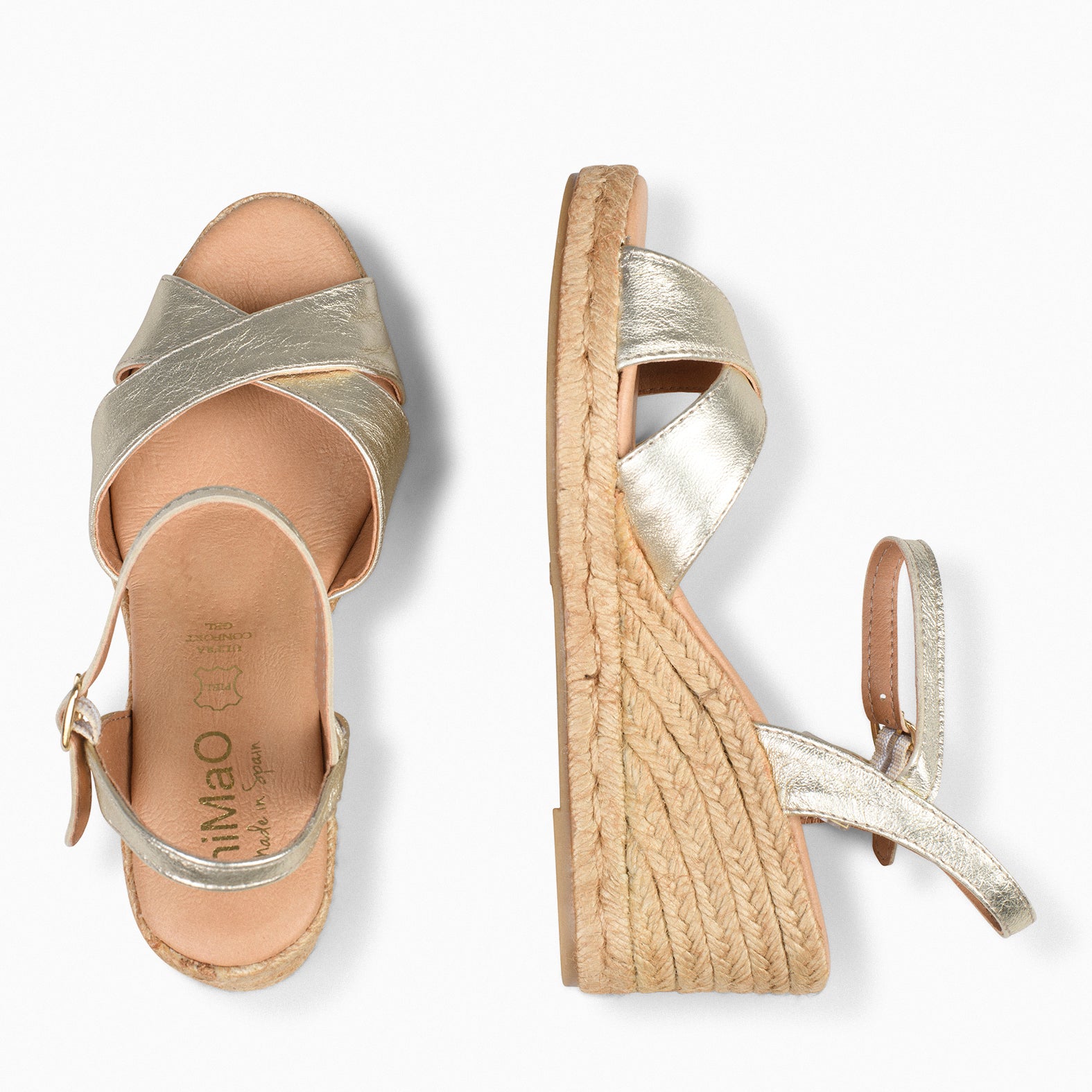 CALPE - CUNHAS DE ESPARTO COM TIRAS E FIVELA PLATINA