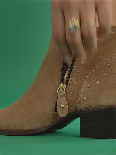 DUSTY - botins em pele rachada com tachas CASTANHO