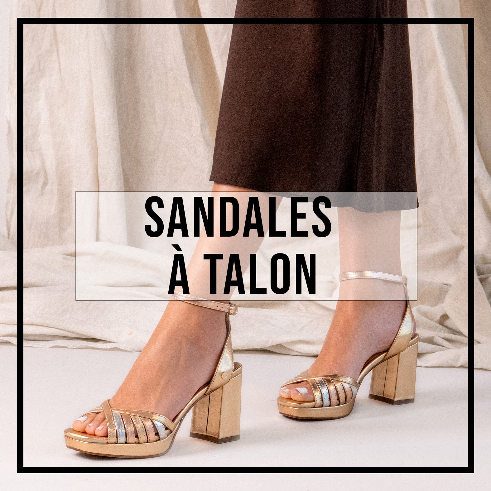 RIO - Chaussures à talon et bride de cheville en cuir BEIGE